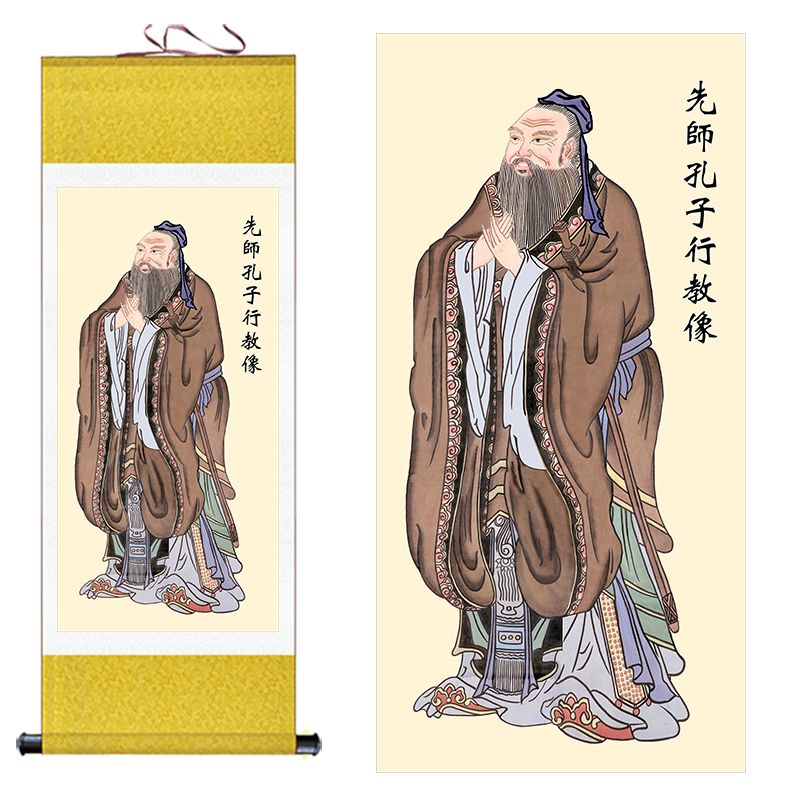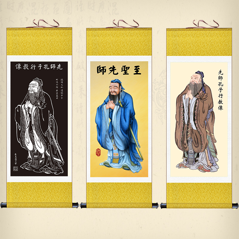 孔子画像挂画丝绸卷轴画 教室办公室书房装饰画 人物画像定制包邮