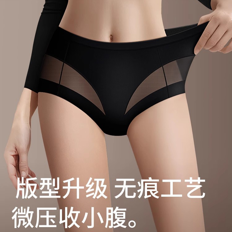 冰丝无痕内裤女士性感蕾丝2025新款高腰收腹夏季薄款少女生三角裤