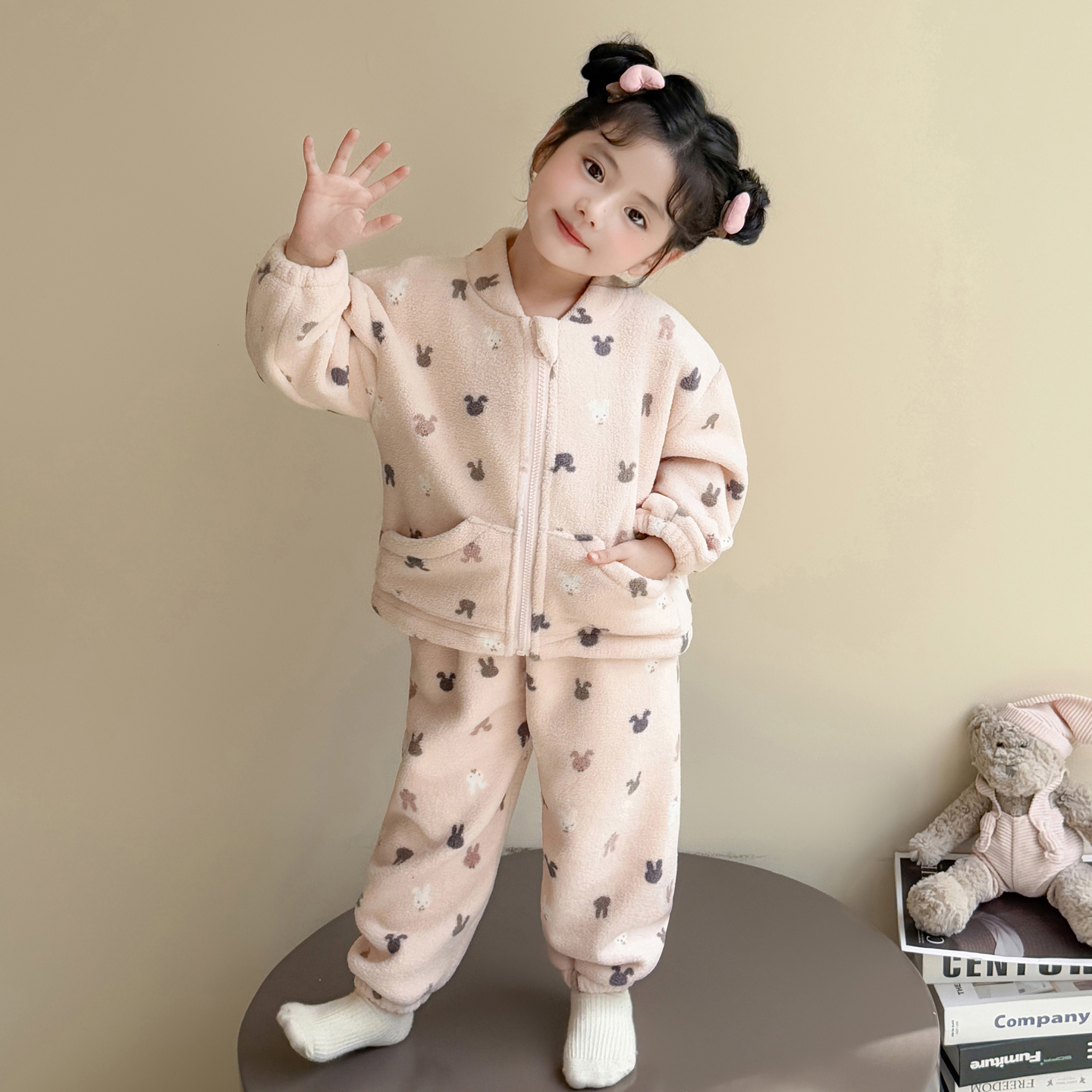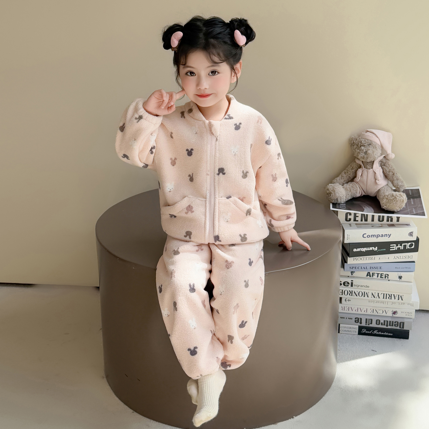 女童睡衣秋冬款2025新款保暖珊瑚绒女孩女宝宝冬装儿童家居服套装
