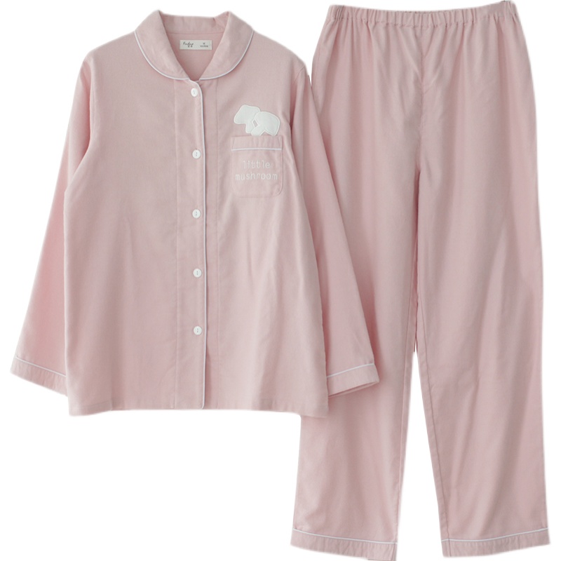 春秋睡衣女士长袖纯棉磨毛绒布可爱日系小翻领纯色秋冬家居服套装