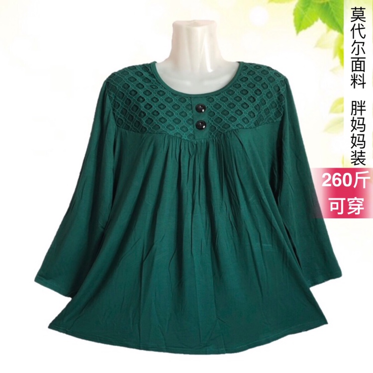 特体200斤260斤长袖T恤莫代尔秋衣中老年女春秋夏大码加肥胖妈妈