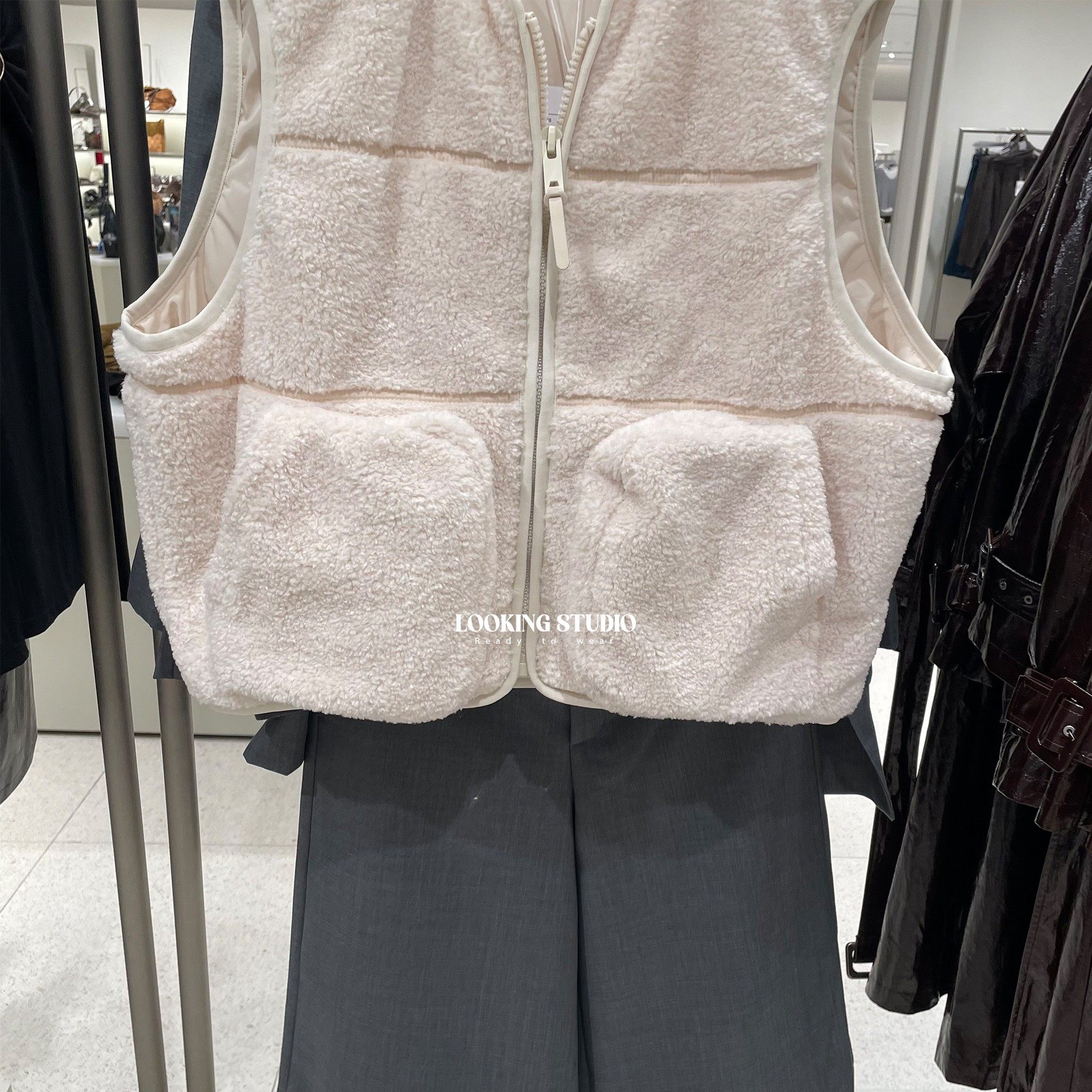 UR&DC2025冬季新款琥珀流光风拉链保暖无袖马甲棉服女短款外套厚