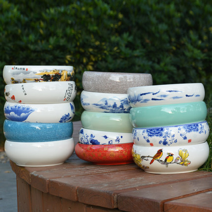 漳州水仙花盆景德镇陶瓷盆铜钱草睡碗莲无孔水养水培专用大号多肉