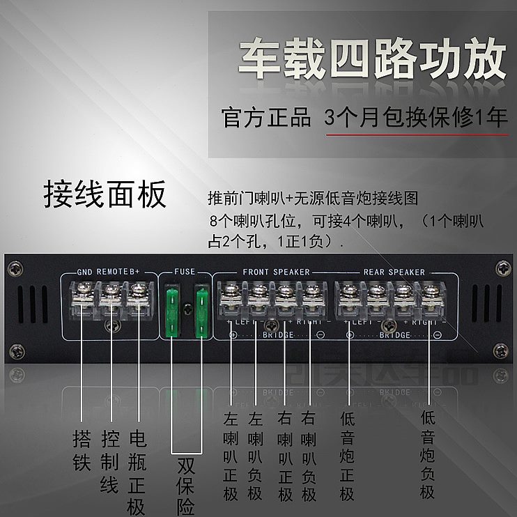 车载功放 专声道四路4推板功放汽车音响喇叭 大功率 汽车功放