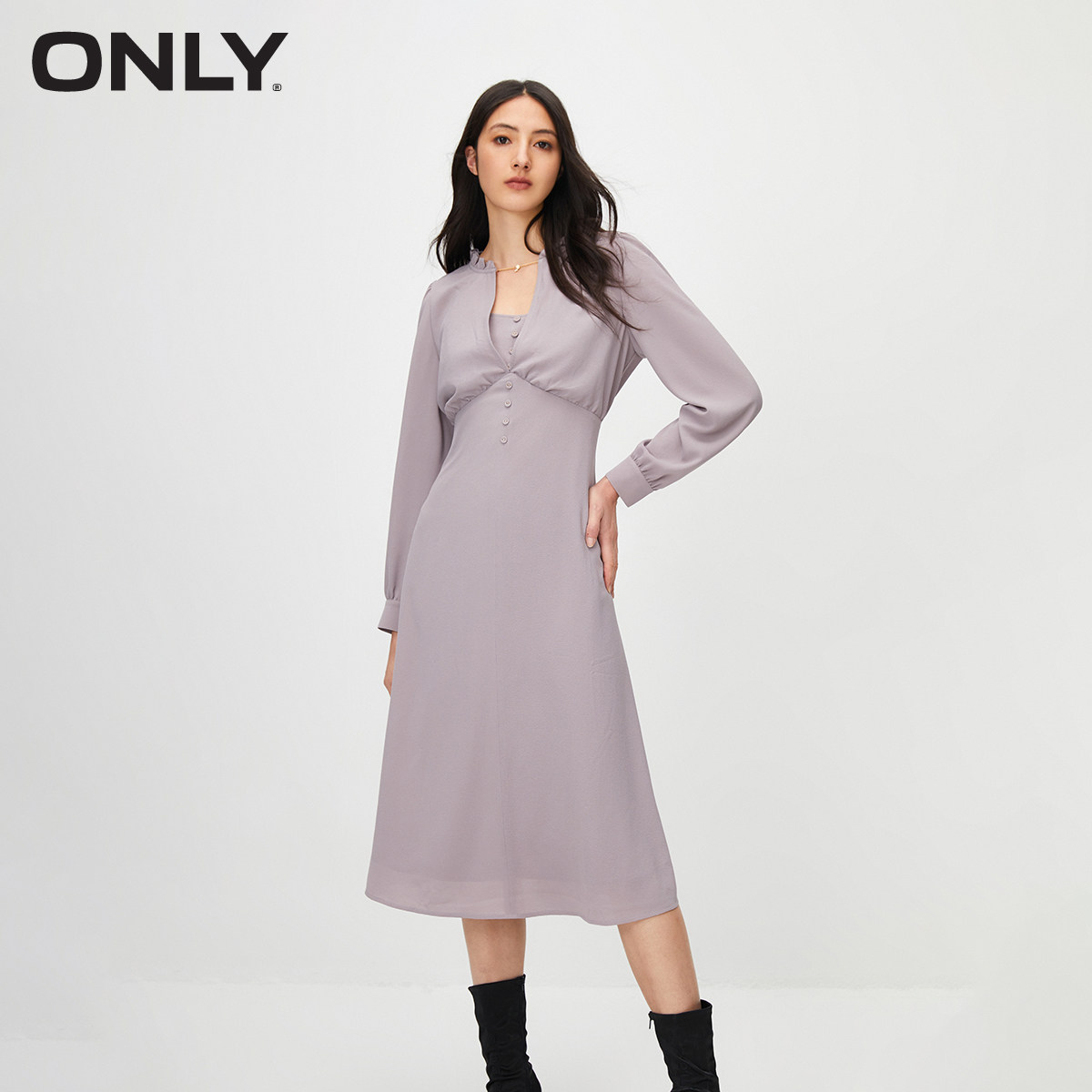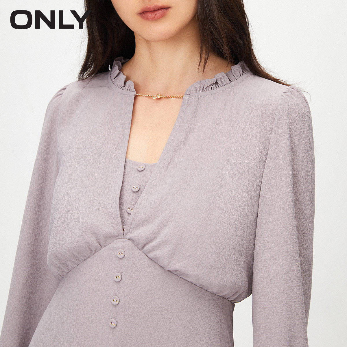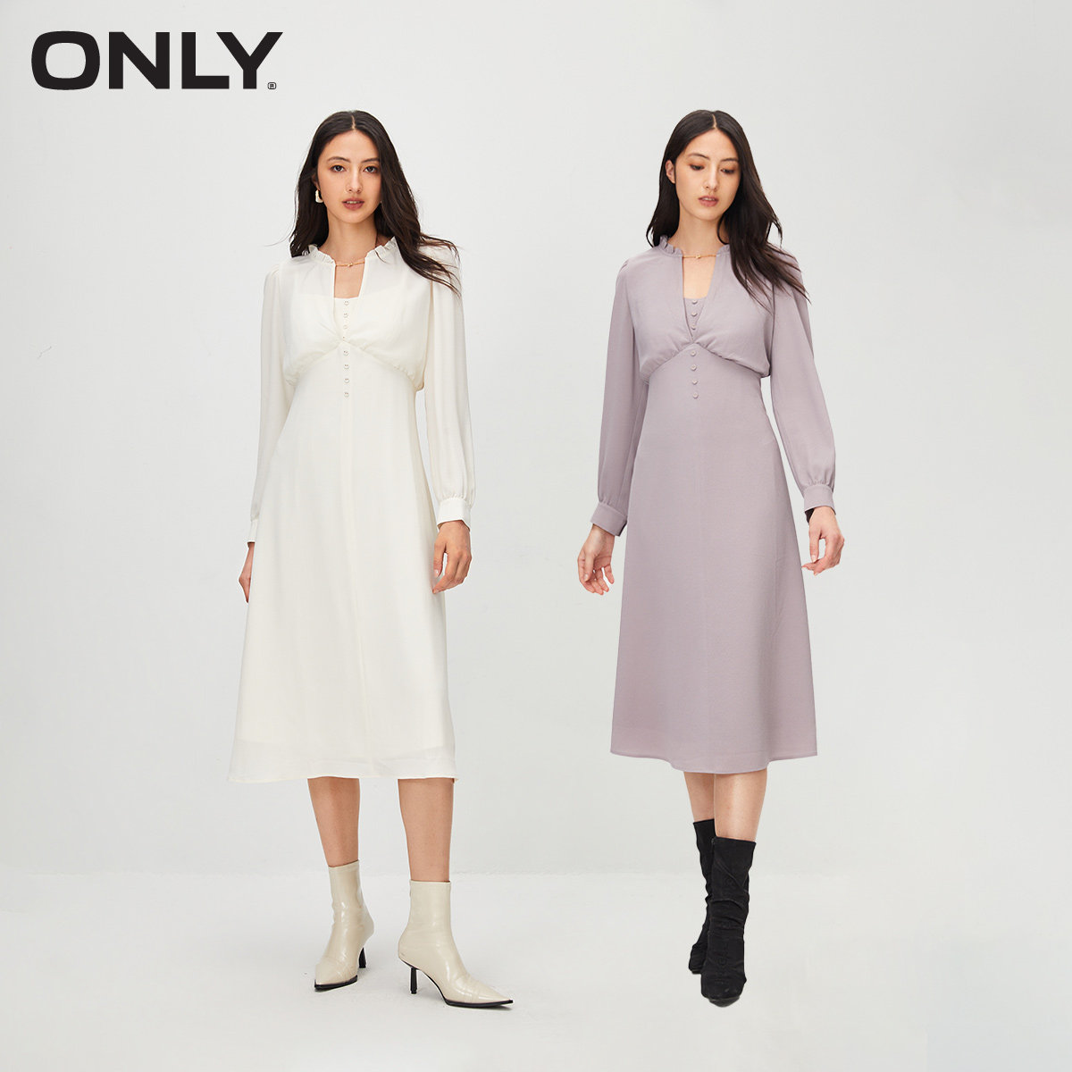 【ONLY奥莱】秋季气质通勤风百搭灯笼袖显瘦连衣裙女