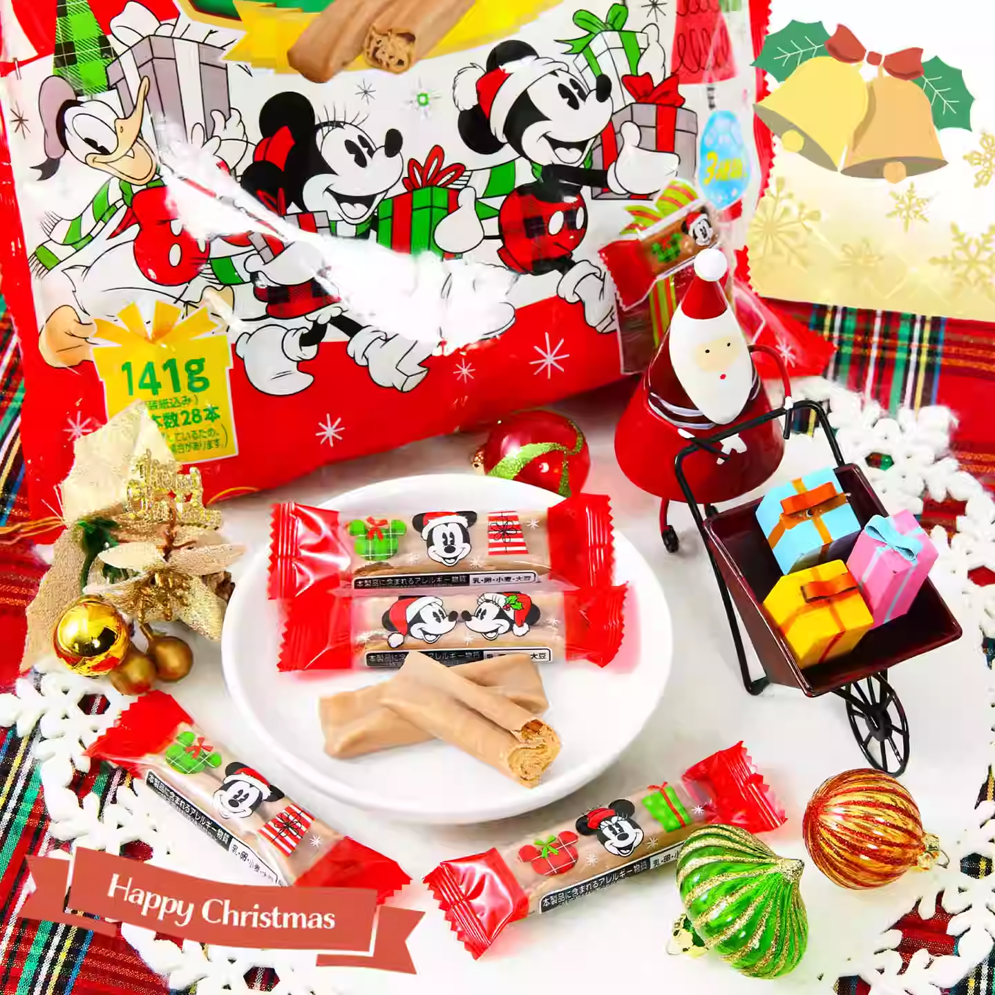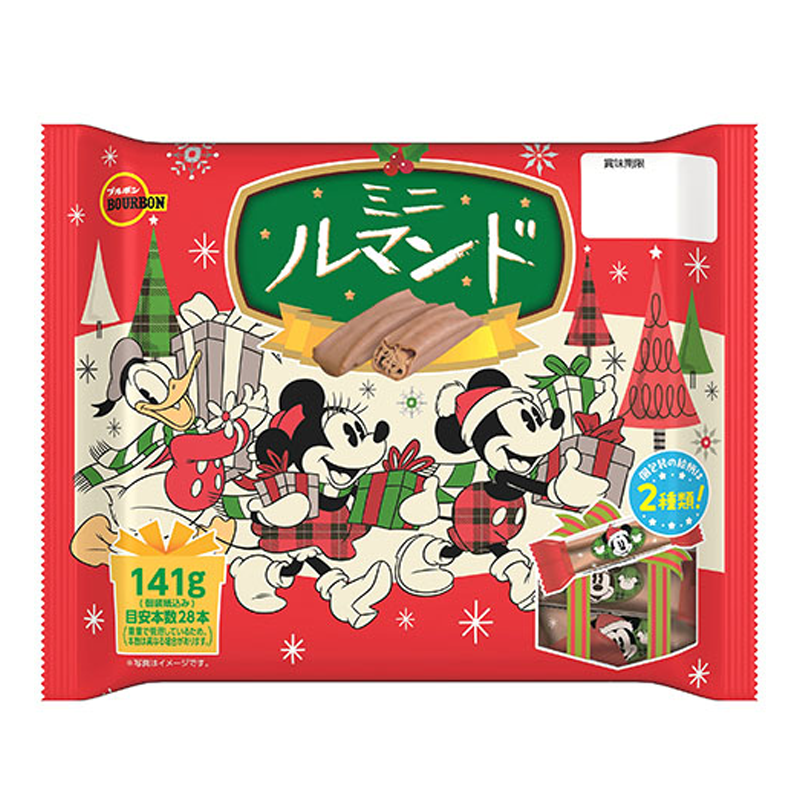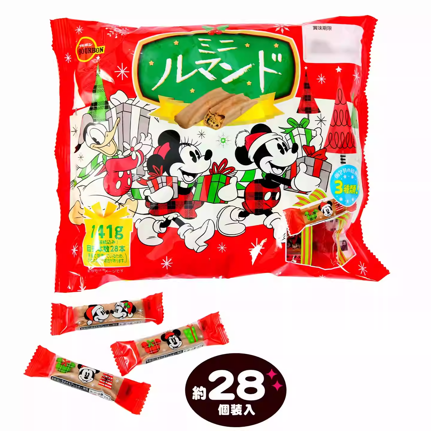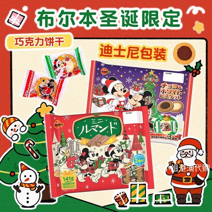 现货日本布尔本Bourbon圣诞限定迪士尼巧克力白奶油夹心饼干送礼