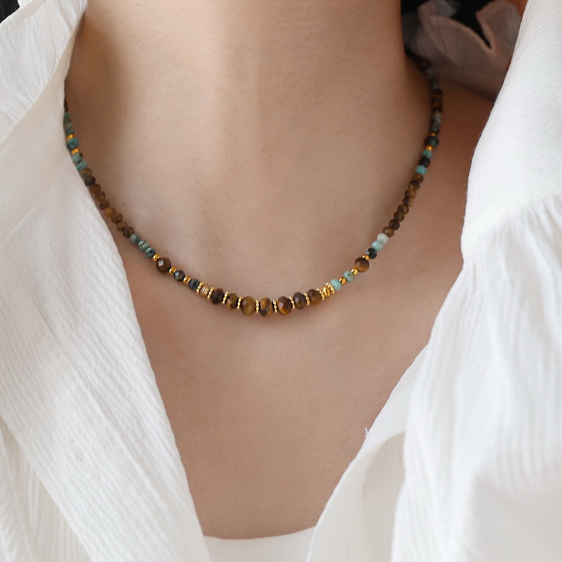 法式复古天然石虎眼石串珠叠戴项链女ins简约高级感锁骨链颈链