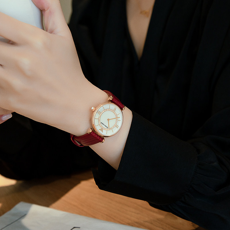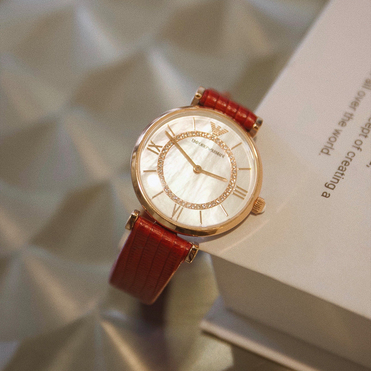 Armani阿玛尼手表女 时尚镶钻满天星摩天轮皮带石英表女表AR11322