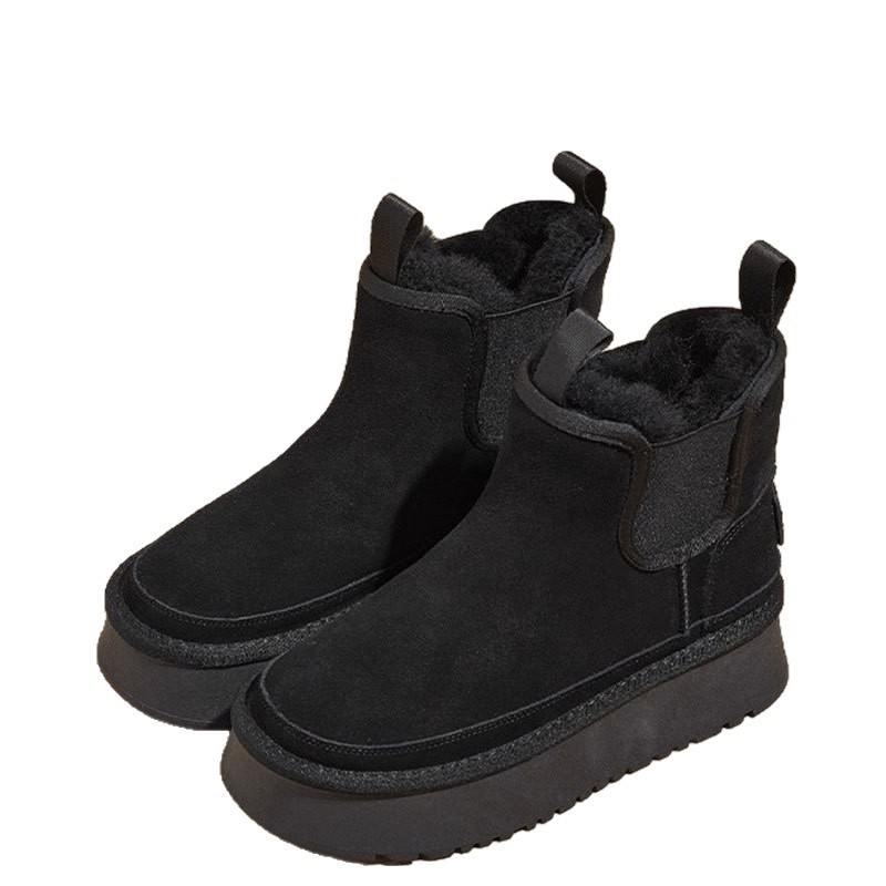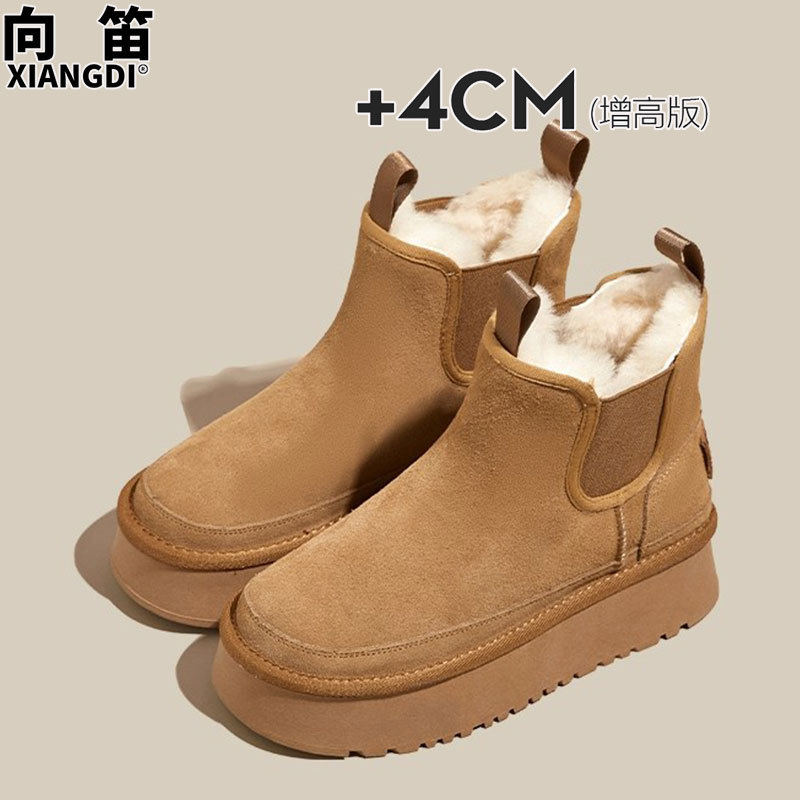 冬季防滑真皮毛一体雪地靴女切尔西短靴厚底加厚绒保暖东北棉鞋子