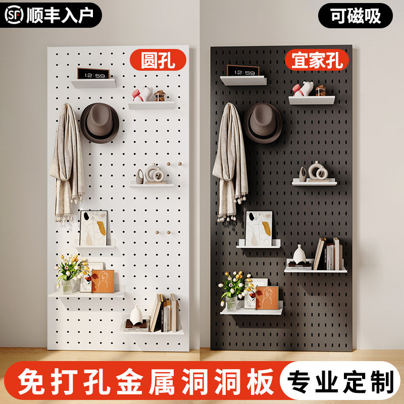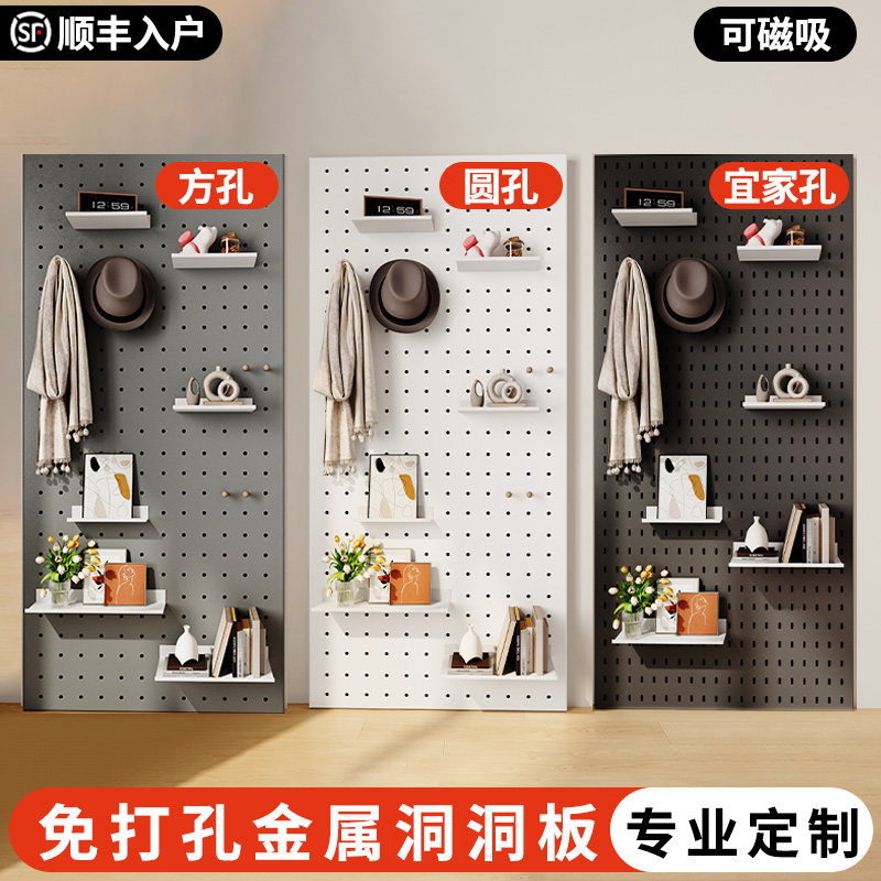 不锈钢洞洞板免打孔铝合金定制造型墙加厚置物架金属磁吸墙面宜家