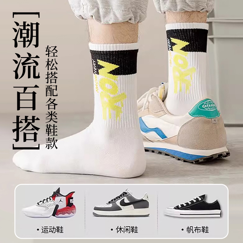 运动袜子男学生青少年秋季新疆棉防臭纯棉中筒袜初中秋季篮球长袜