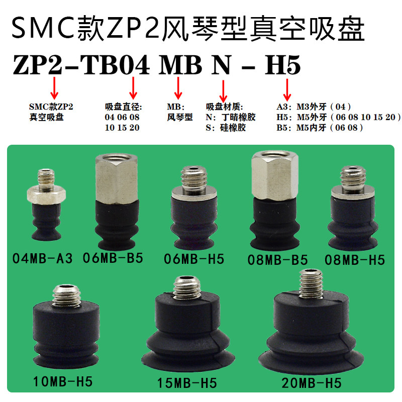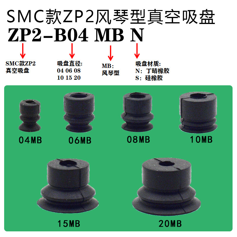 SMC款ZP2-B04/6/8/10/15/20MBN/S风琴型真空吸盘硅胶橡胶气动吸嘴
