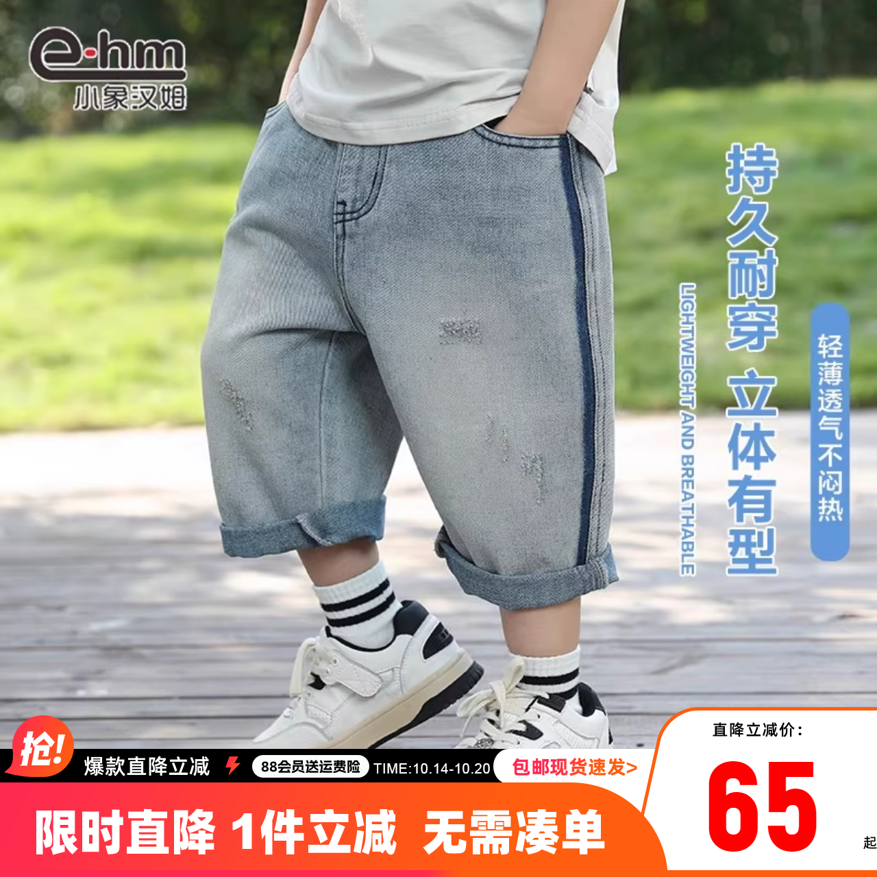 小象汉姆童装男童短裤夏天儿童牛仔中裤五分裤2025夏装新款洋气薄