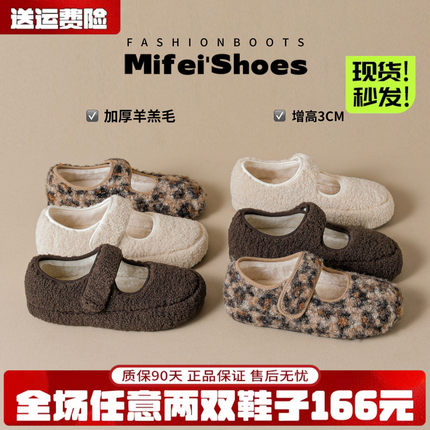 米霏~法式内增高加绒毛毛鞋女外穿羊羔毛玛丽珍豹纹棉鞋大码女鞋
