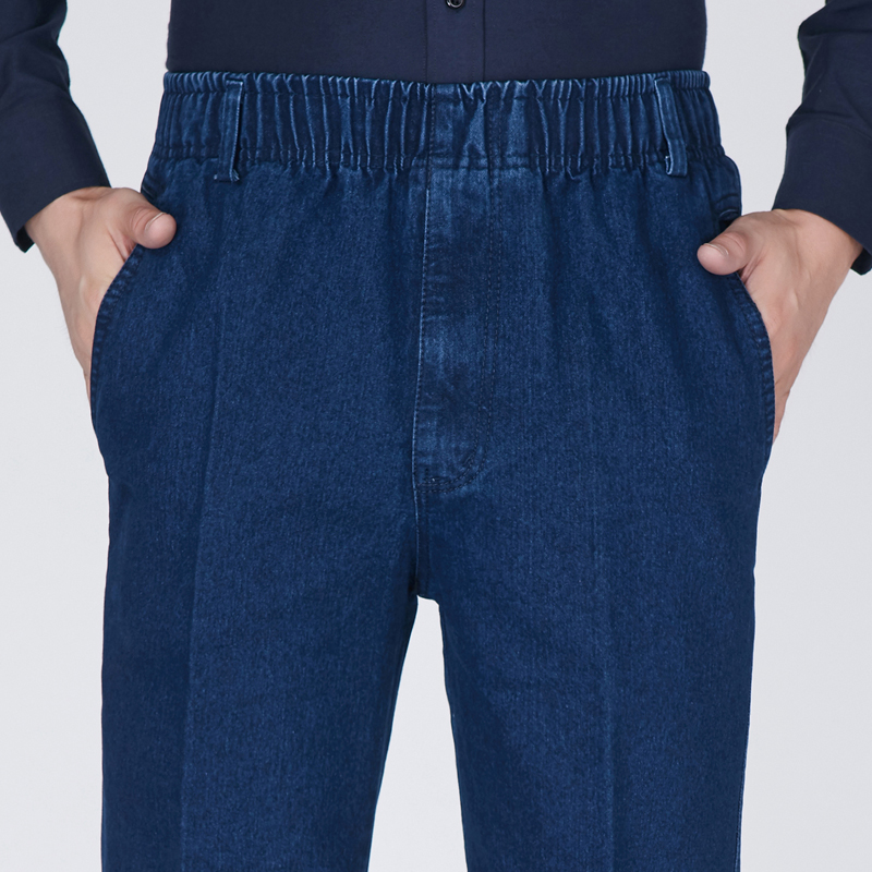 高弹力松紧腰牛仔裤高腰宽松深裆男裤中老年男士春季薄款夏