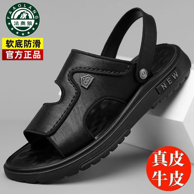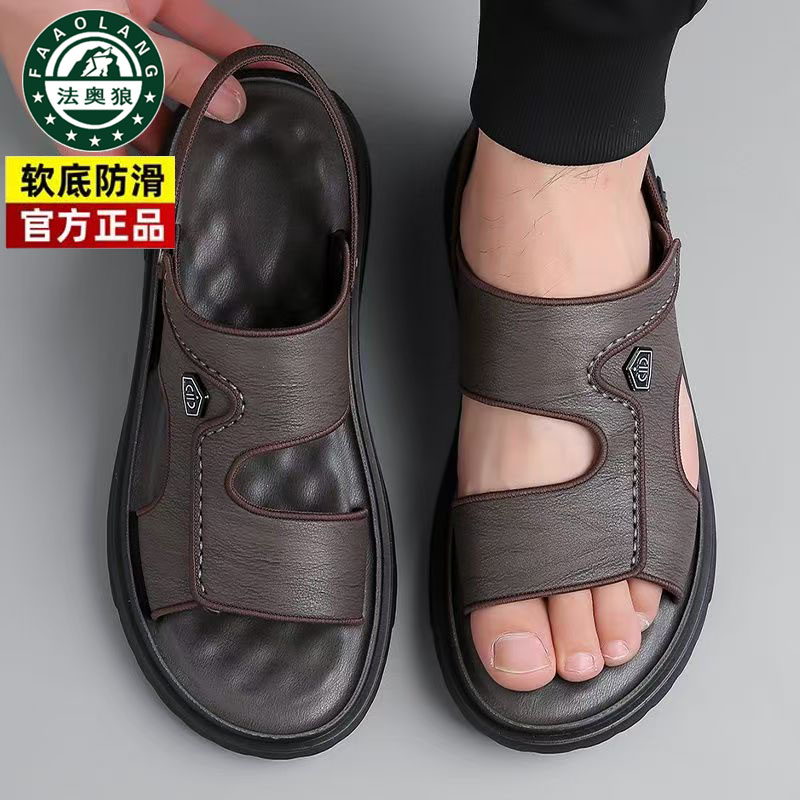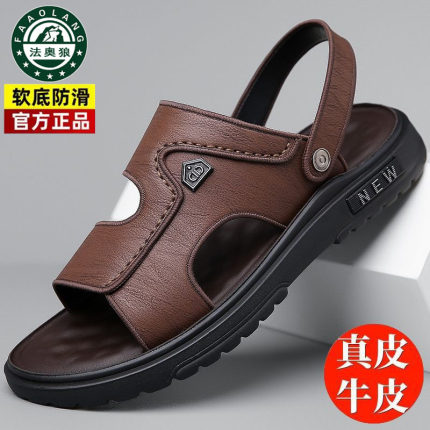 法奥狼男士凉鞋真皮新款夏季外穿沙滩鞋软底耐磨休闲防滑两用拖鞋