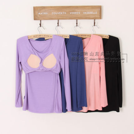 两件包邮女BRA长袖T恤带胸垫莫代尔棉打底衫居家运动瑜伽 春夏装