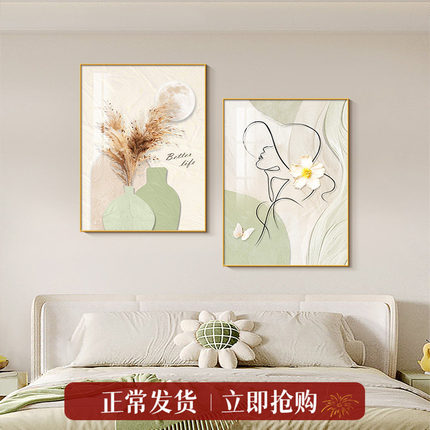 卧室床头装饰画艺术人物沙发背景墙奶油风情侣房挂画主卧房间壁画