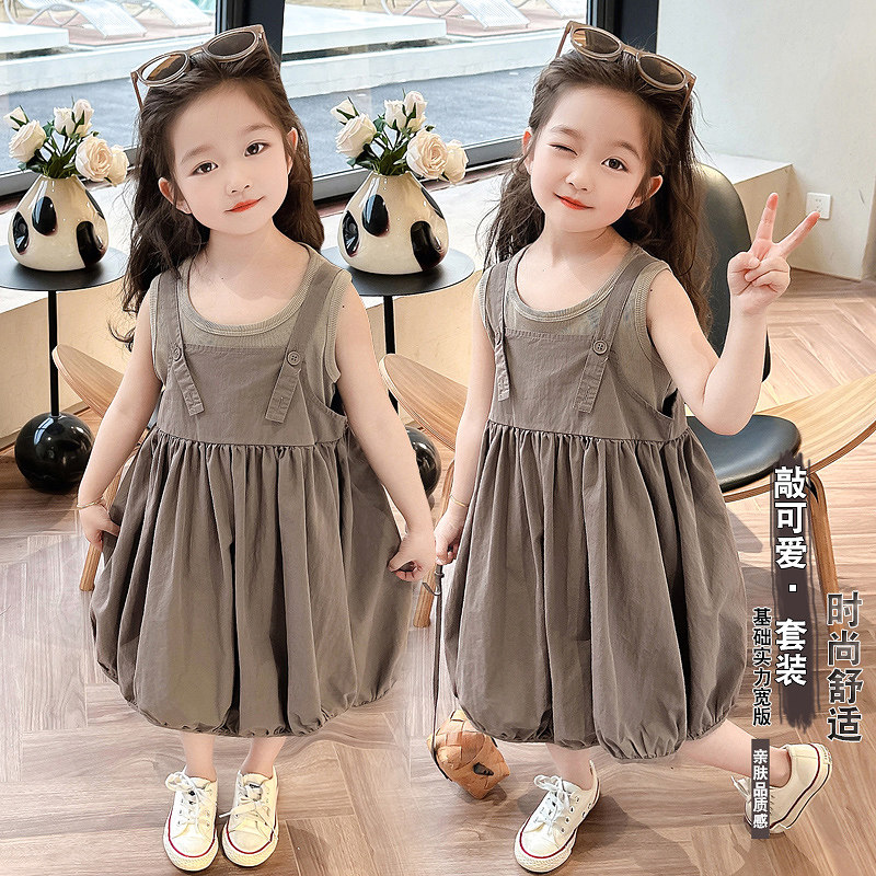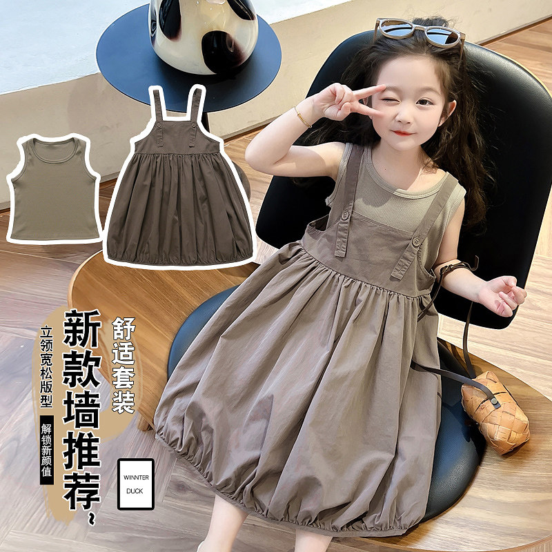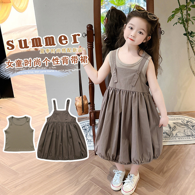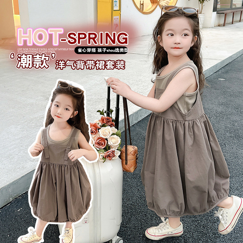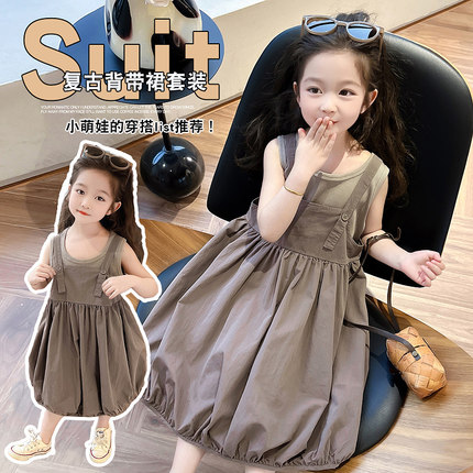 2024夏季新款女童森系花苞背带裙套装夏款洋气两件套时尚韩版夏装