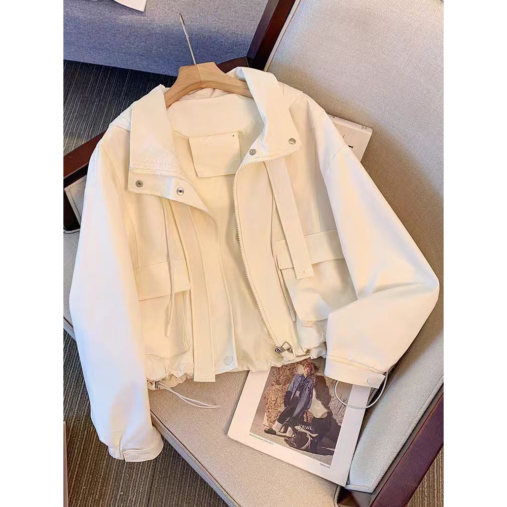 短款连帽春秋2025新款宽松休闲工装小个子夹克上衣薄款外套冲锋衣