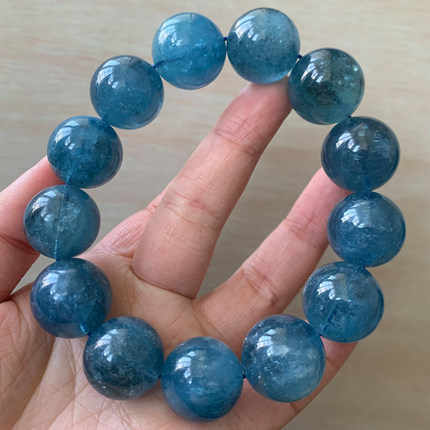 天然冰透魔鬼蓝星光海蓝宝手链