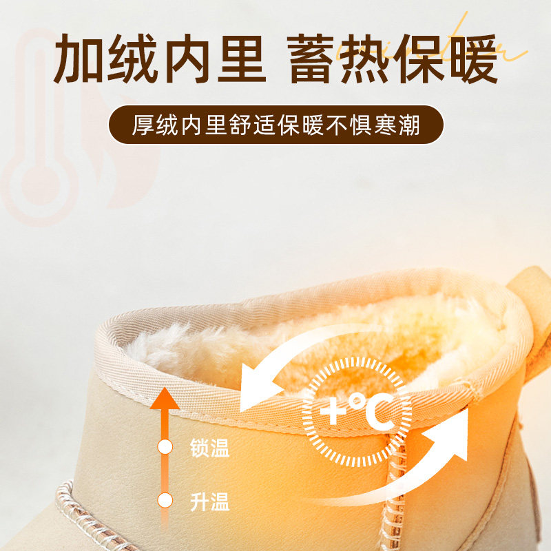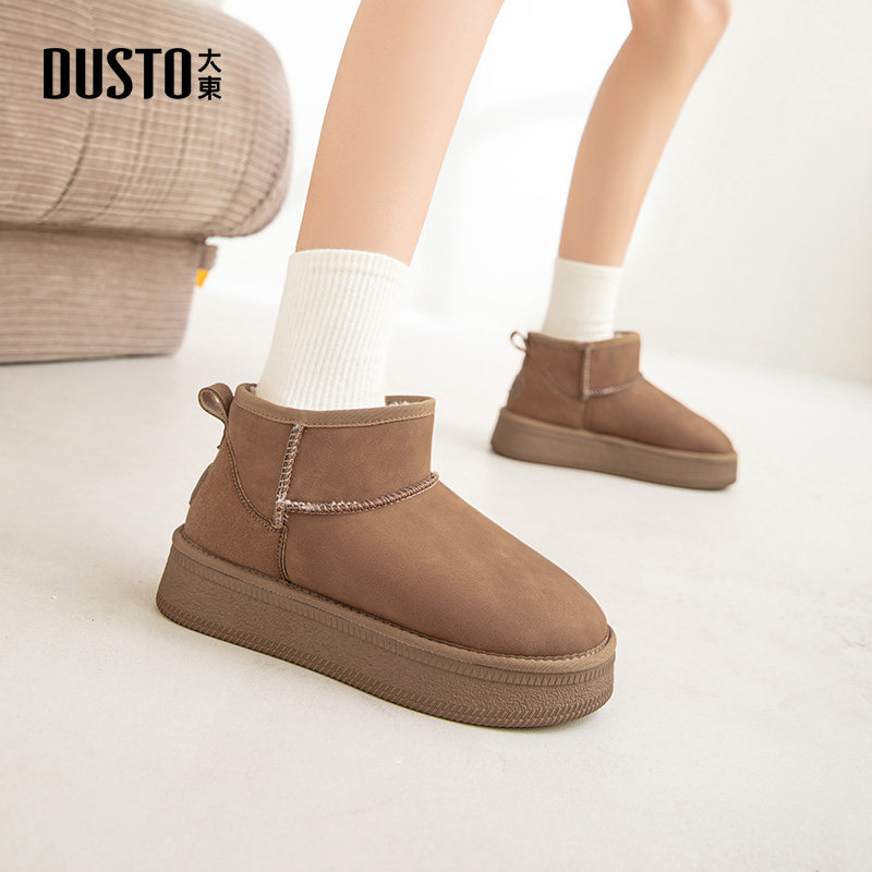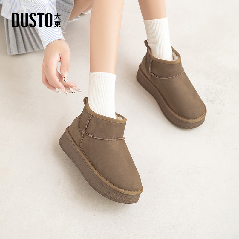 大东2025冬季新款女鞋时尚休闲平底加厚雪地靴中跟圆头保暖女短靴