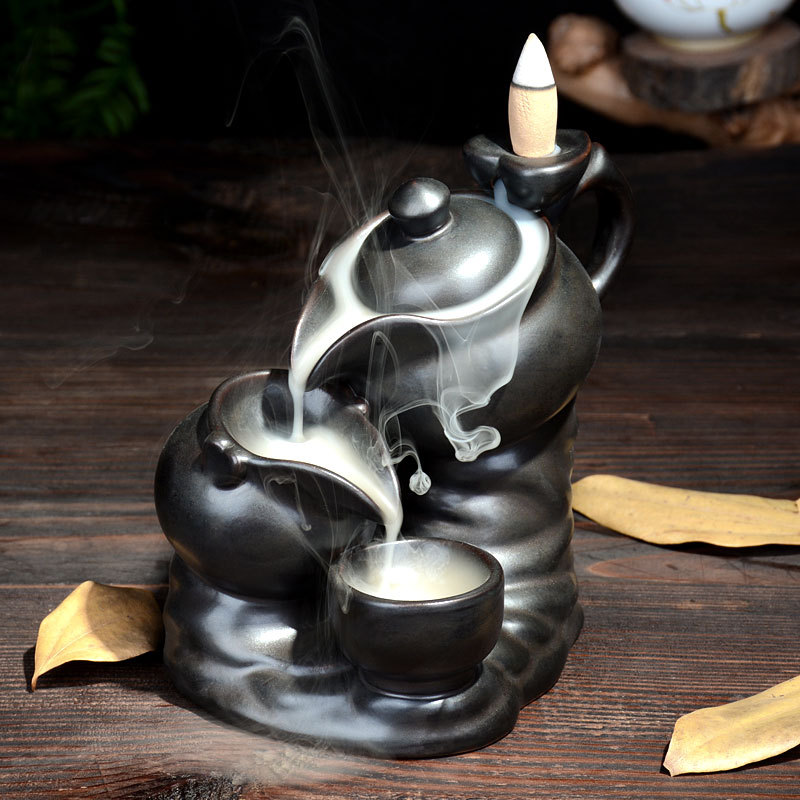 陶瓷倒流香炉创意摆件福寿延年塔香香炉香座香道仿古倒流香器