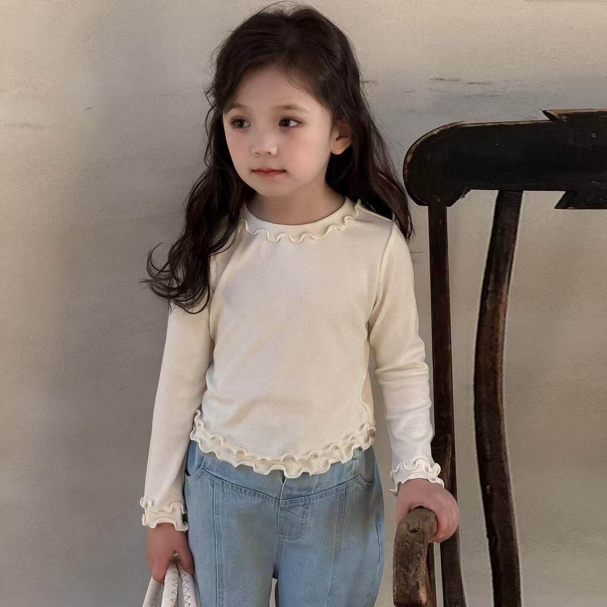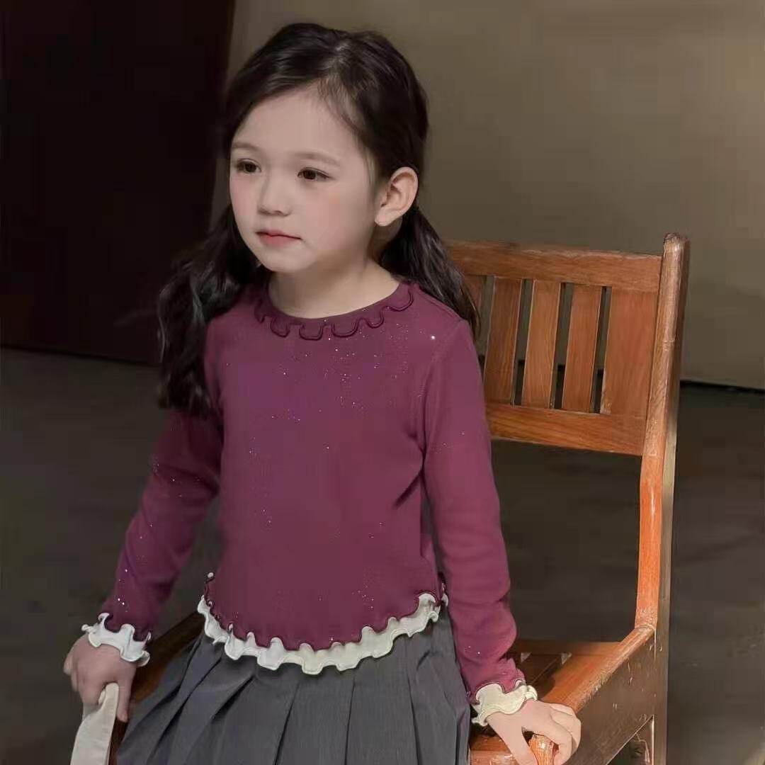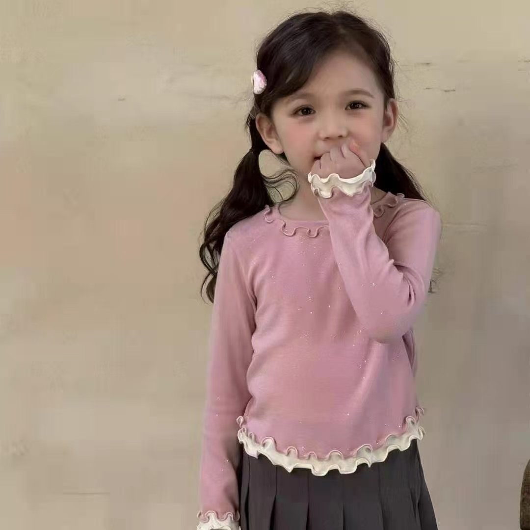 女童打底衫春秋装2025新款韩版甜美儿童女宝宝花边洋气假两件T恤
