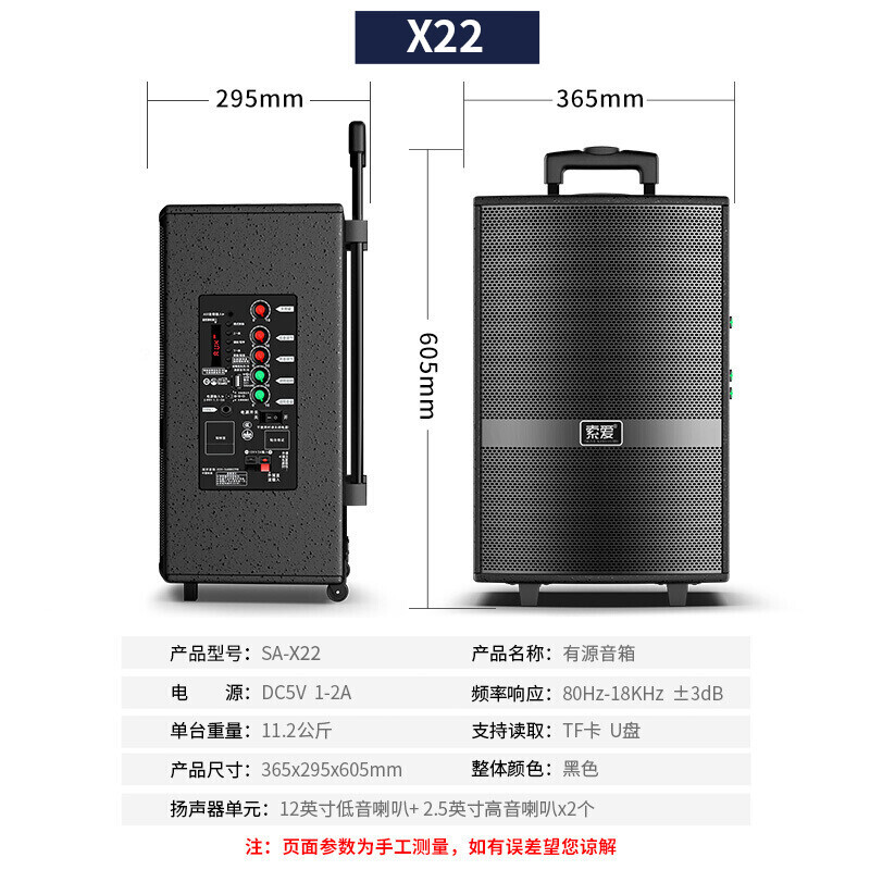 索爱SA-X22 12英寸大功率重低音广场舞音响 移动户外蓝牙拉杆音箱
