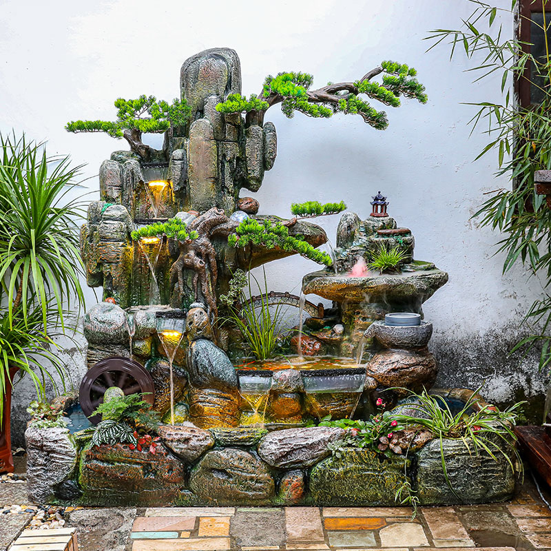 假山流水风水轮公司开业生财大型喷泉养鱼池树脂别墅庭院装饰摆件
