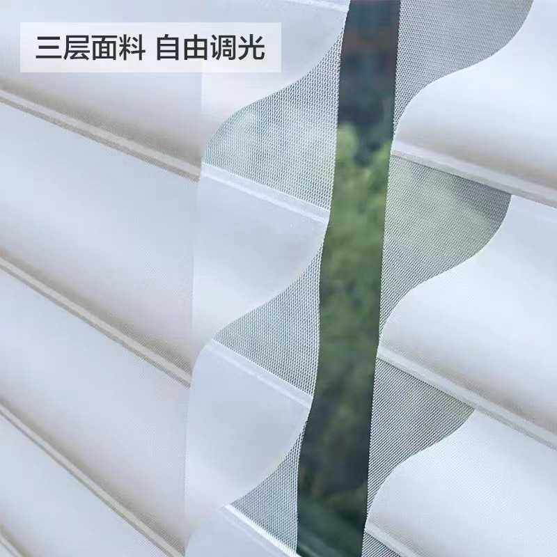 电动香格里拉帘纯色柔纱帘半遮光帘书房卧室办公室卷拉式窗帘遥控