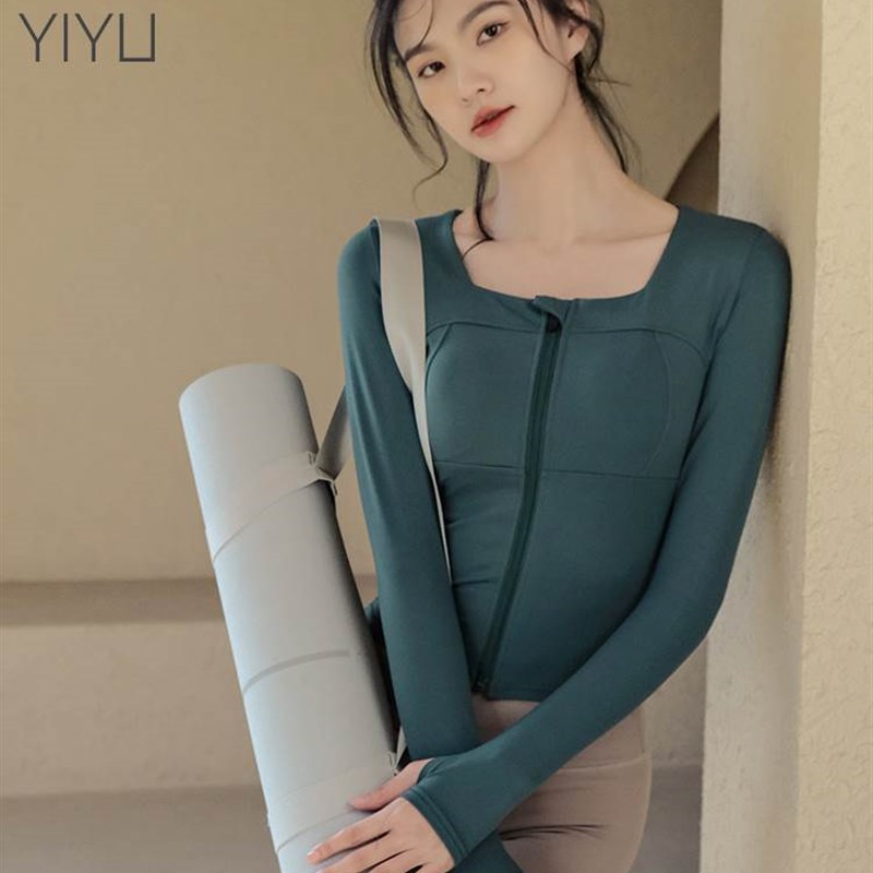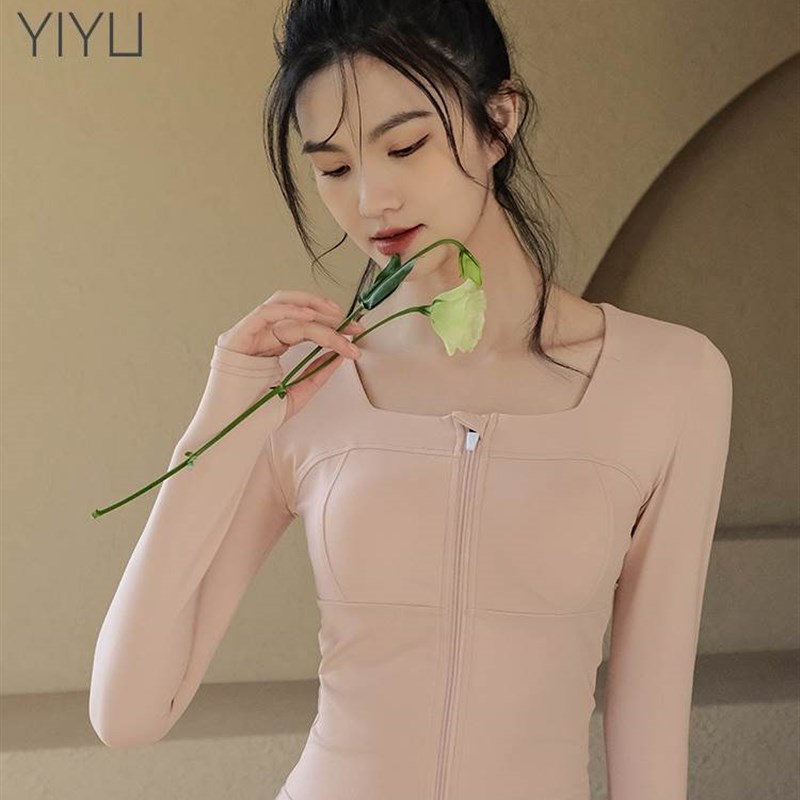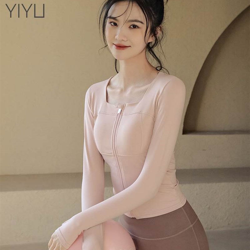 瑜伽服女带e胸垫运动上衣长袖拉链开衫速干紧身跑步训练健身服春