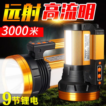 手电筒强光超亮户外远射led大功率超长续航大容量充电手提探照灯