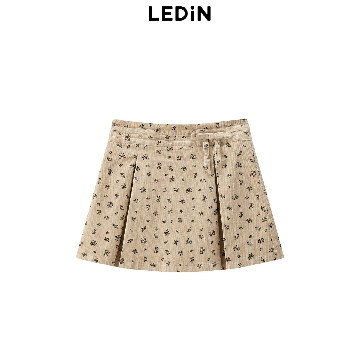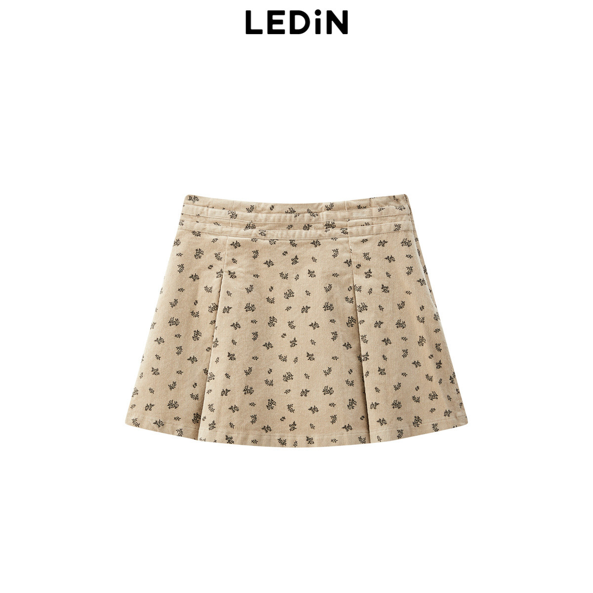 【商场同款】乐町灯芯绒百褶裙24年冬季新款满印半身裙C1GEE4258
