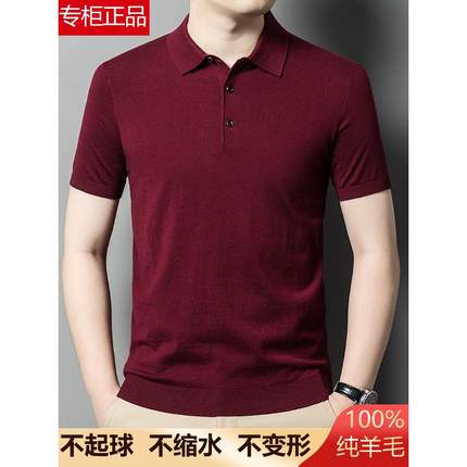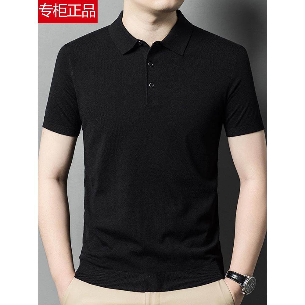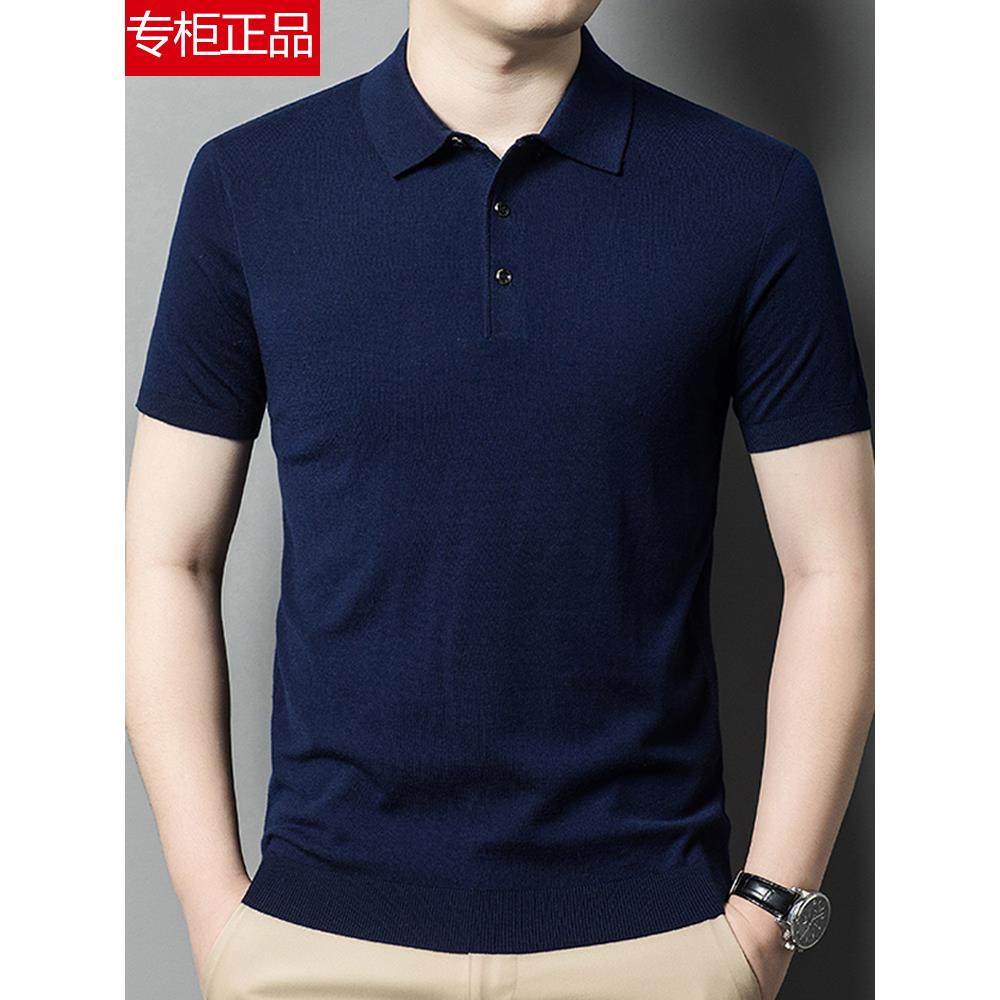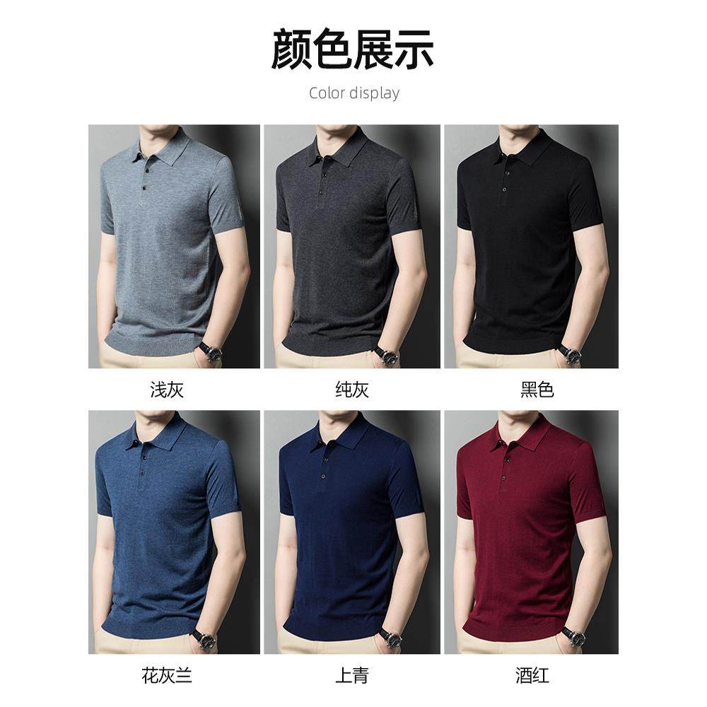鄂尔多斯市秋季中年短袖羊毛衫男翻领半袖衫纯色商务大码针织毛衣