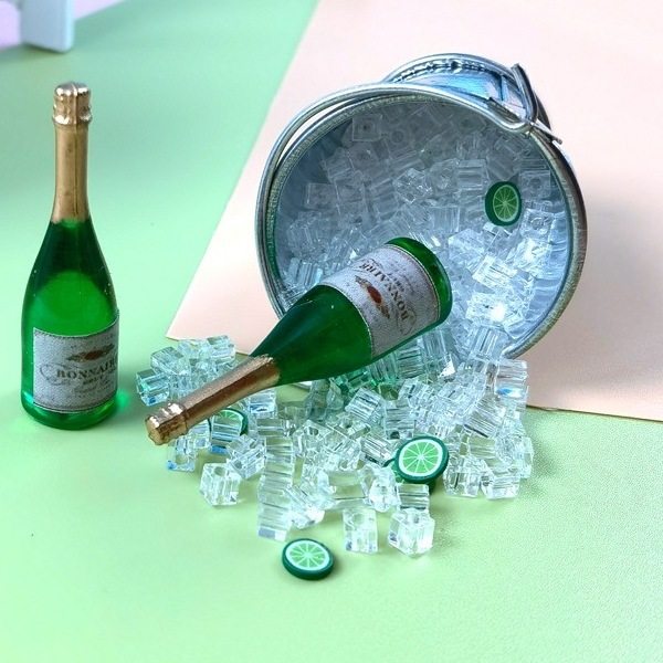 微缩食玩diy场景模型布娃娃屋配件bjd食物玩具迷你仿真冰桶香槟酒