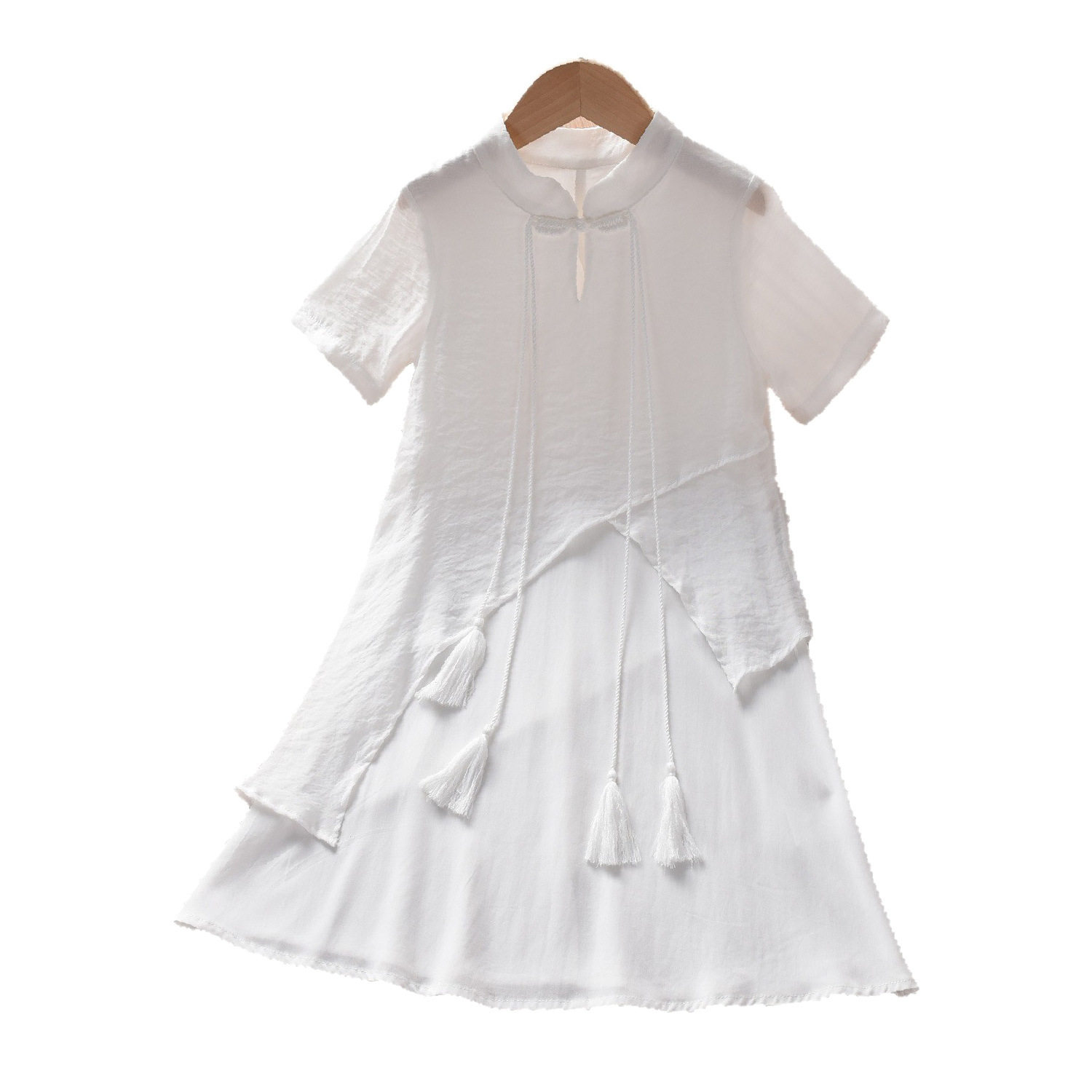 特价新中式国风短袖女童夏新款复古盘扣气质母女亲子装流苏连衣裙