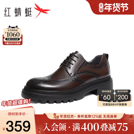 红蜻蜓男鞋秋冬新款厚底增高商务正装皮鞋男雕花布洛克结婚新郎鞋