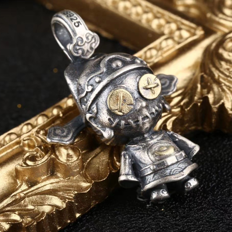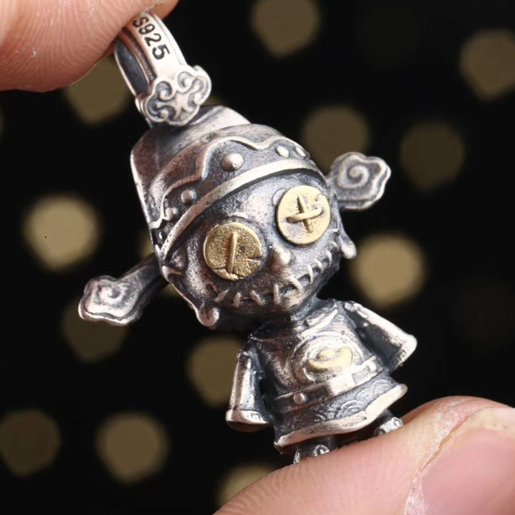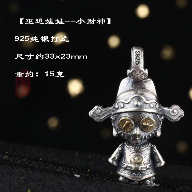 纯银伏尔甘巫逗小财神吊坠woodoo娃娃中国传统神话民族风银饰