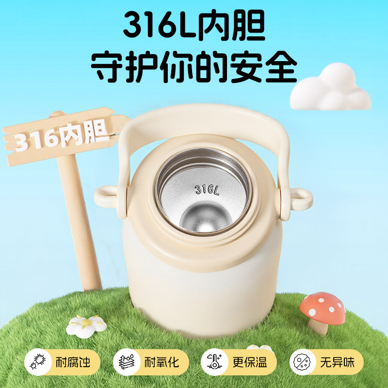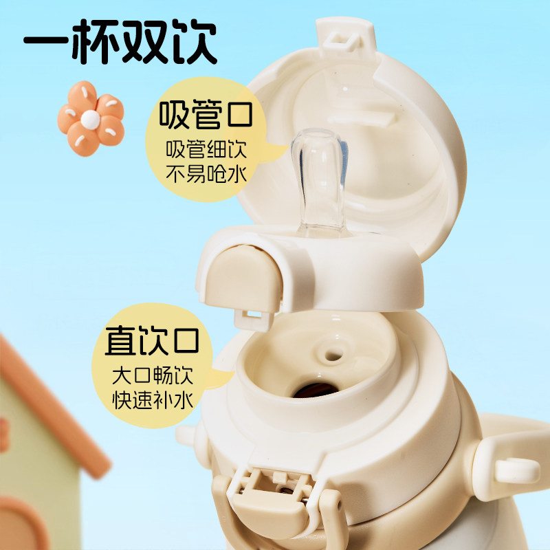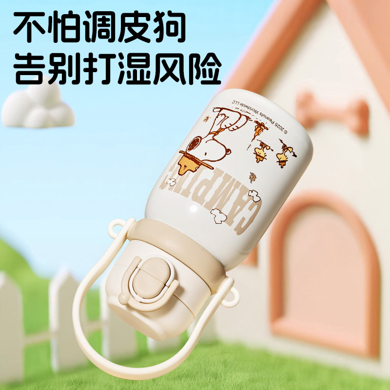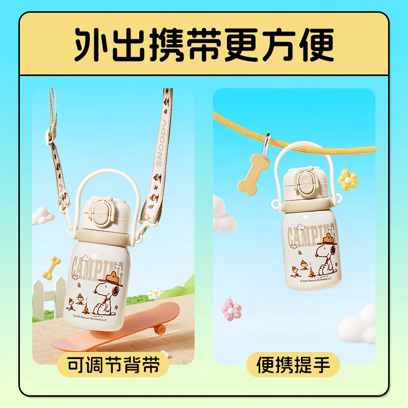 史努比儿童保温杯女孩小学生上学专用大肚吸管水杯316L双饮拎拎壶