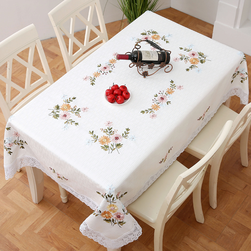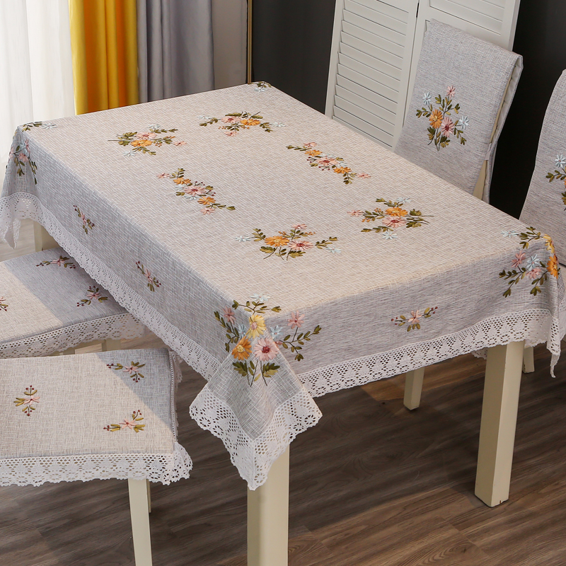 棉麻餐桌桌布布艺长o方形茶几布家用中式台布正方形绣花盖布田园