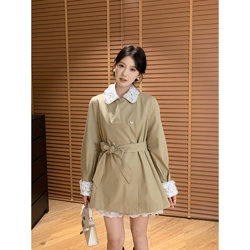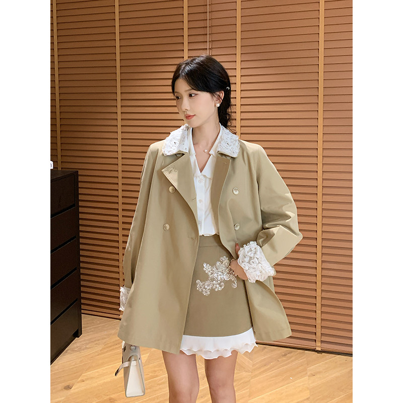 SHAOER【曼城旧事】秋季新品长袖蕾丝拼接风衣外套女S725T15435