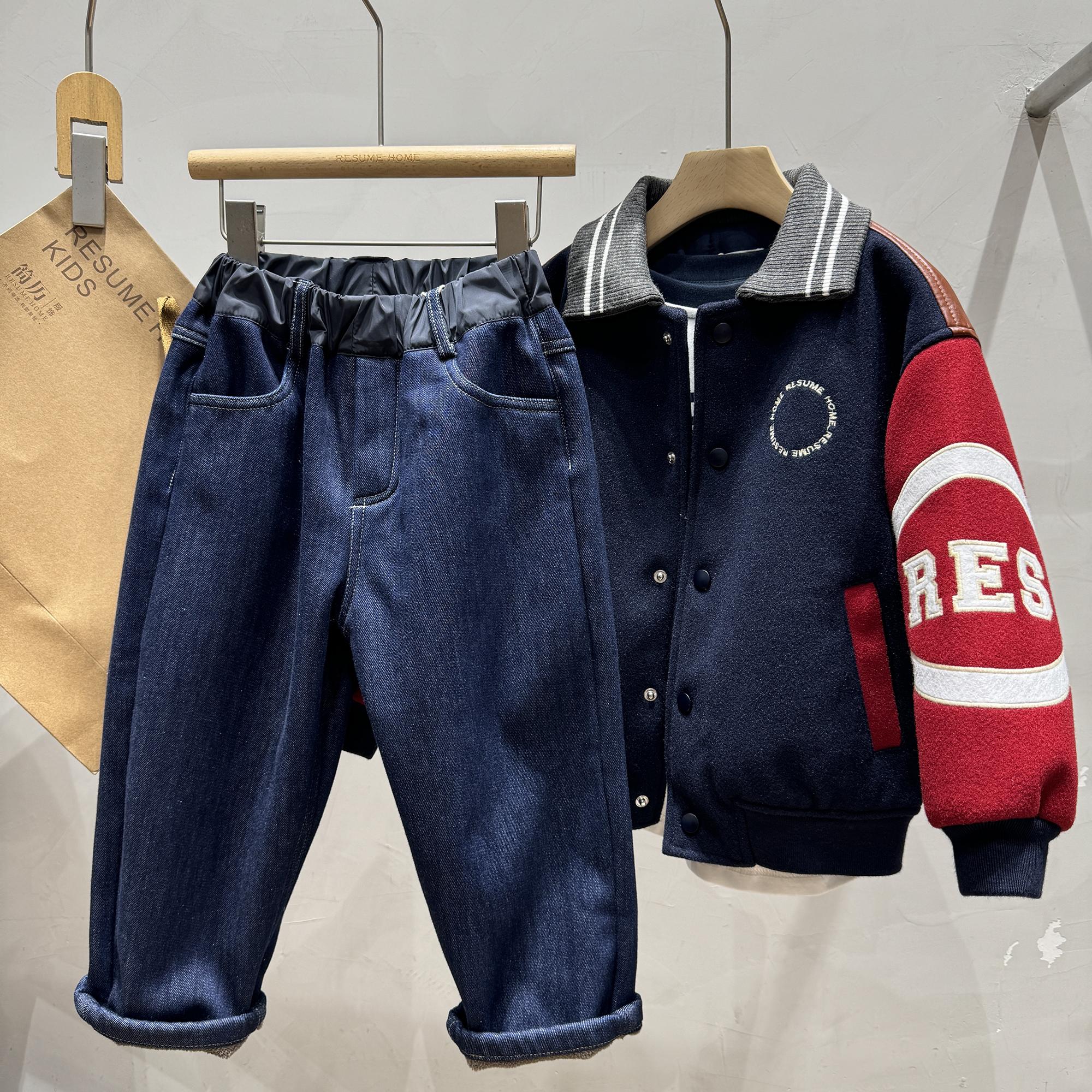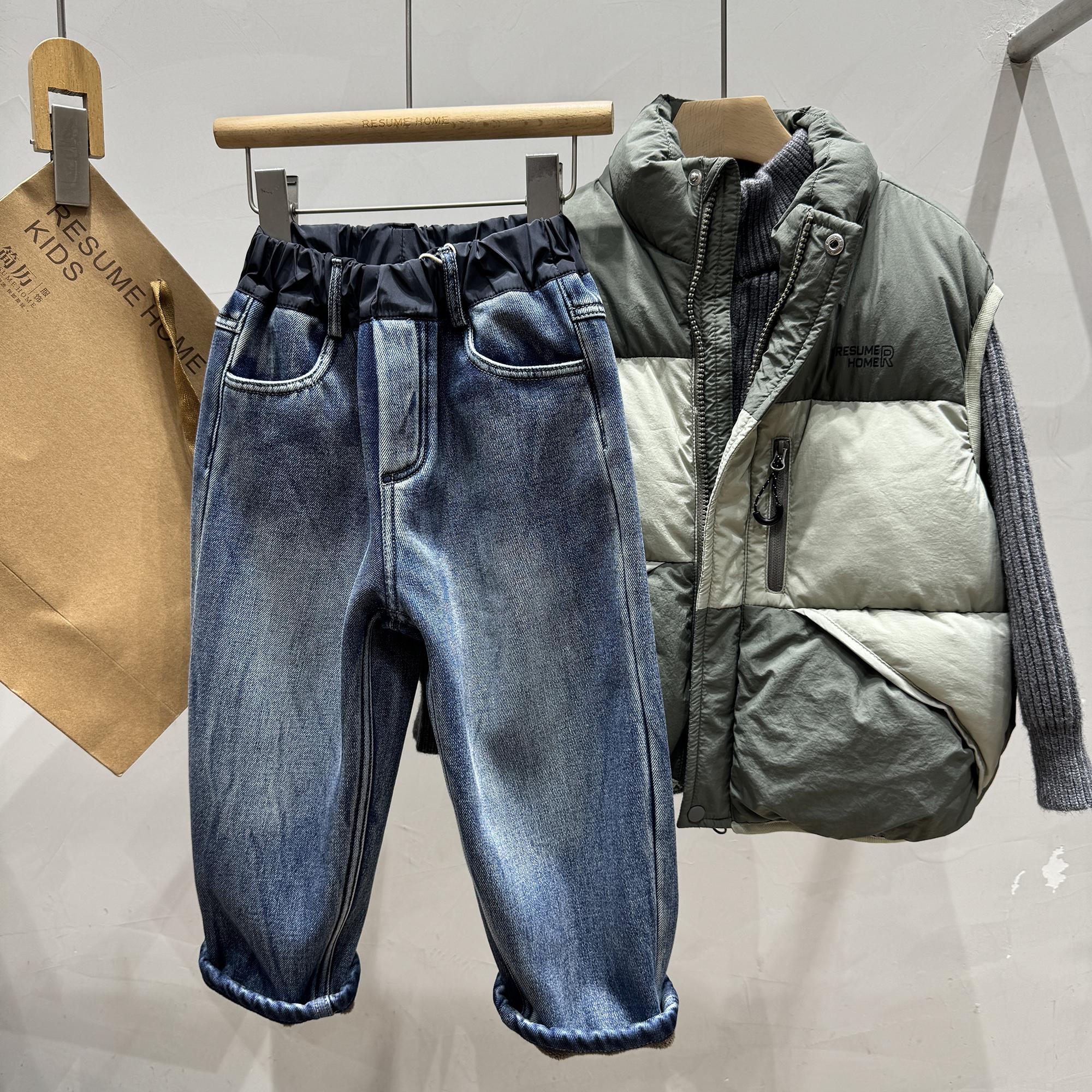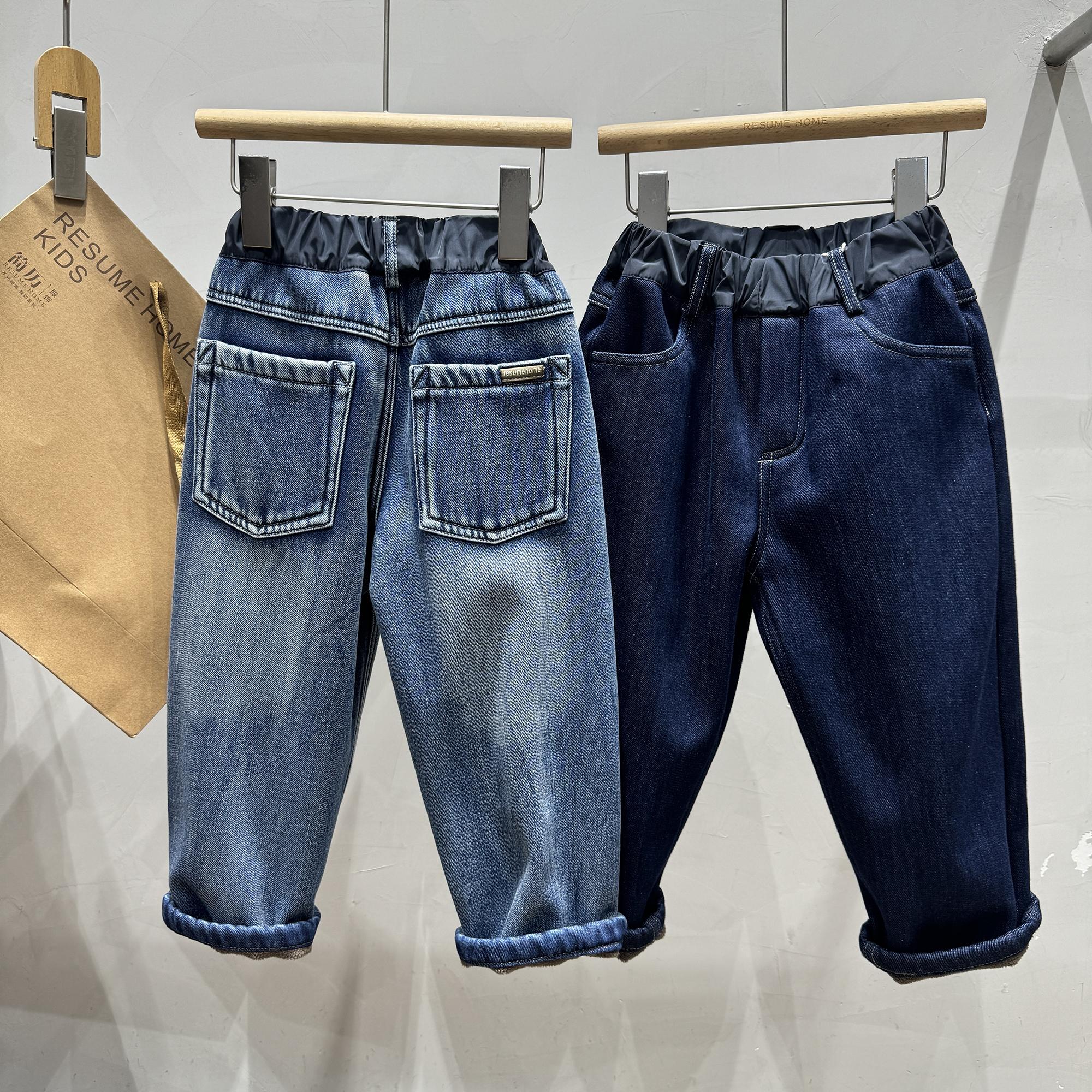 RESUMEHOME简历家2024冬季宝宝百搭水洗纯棉一体绒加厚儿童牛仔裤