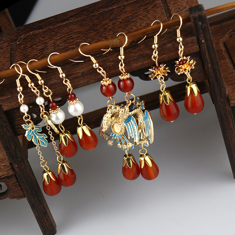 铜镀真金红玛瑙水滴吊坠挂坠发簪胸针耳环手链项链手工diy材料