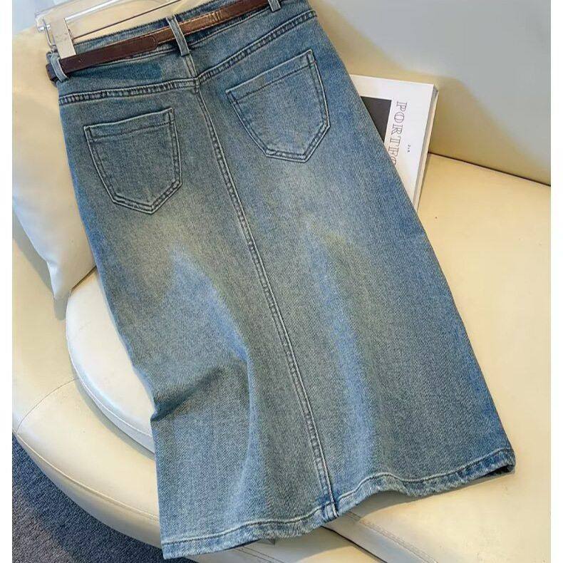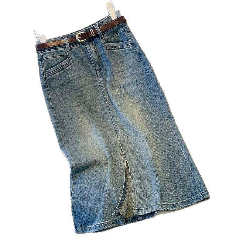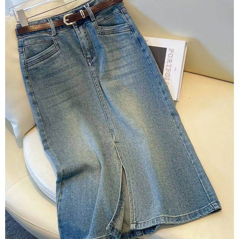 牛仔裙2025字年半身裙新款女一步裙开叉a高腰显瘦长款复古中长款