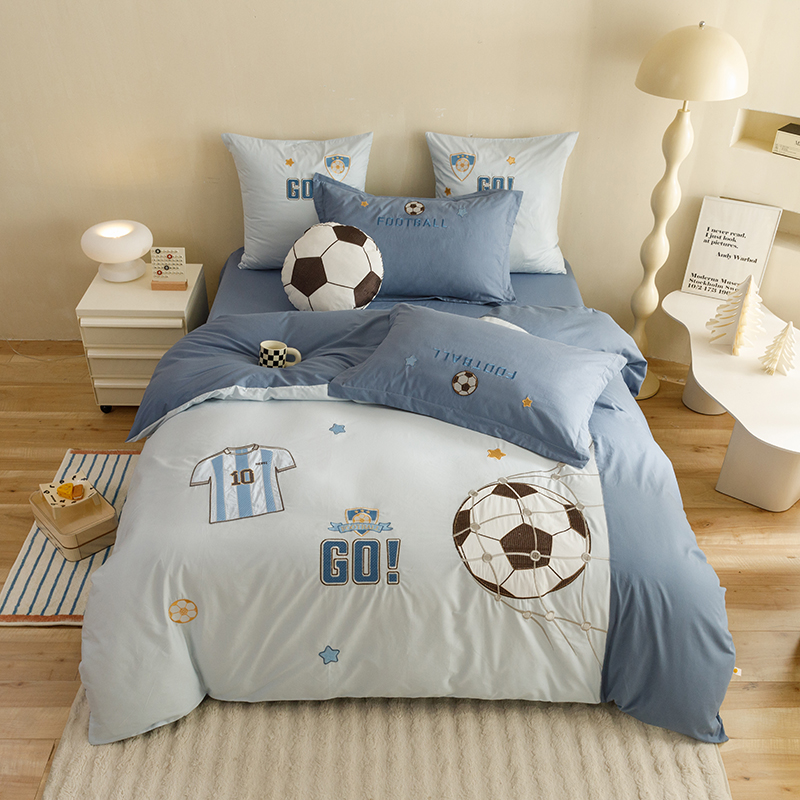 男孩足球卡通纯棉水洗棉四件套儿童全棉被套床单人三件套床上用品