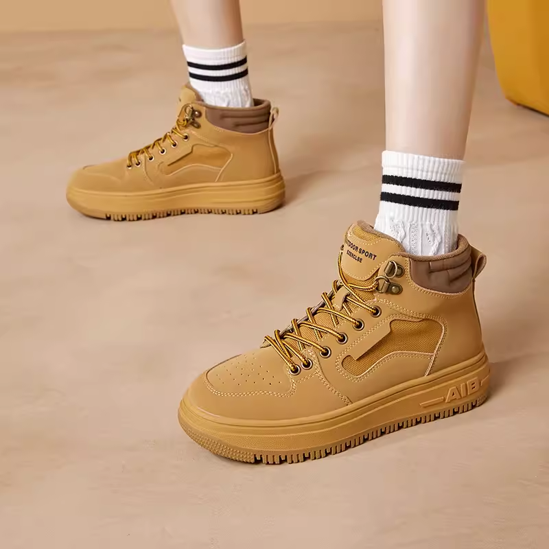 DUSTO大东休闲运动年冬季新款时尚圆头透气孔系带中跟女鞋23D1300
