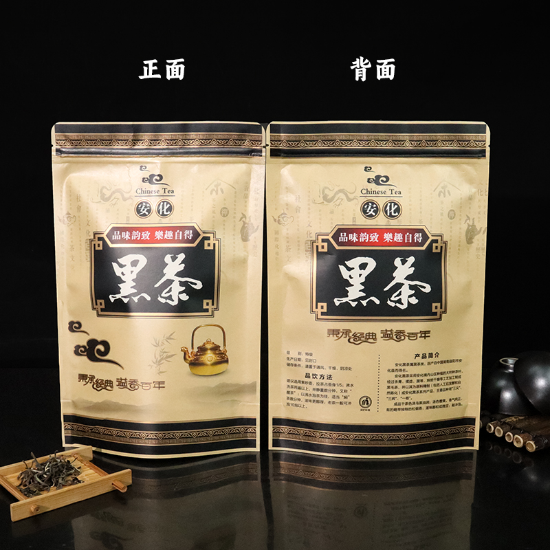 黑茶茶叶包装袋牛皮纸袋半斤二两安化黑茶自封袋站立镀铝包装袋