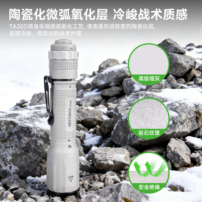 纳丽德TA30D微弧手电筒强光2025新款超亮远射可充电户外搜索防身