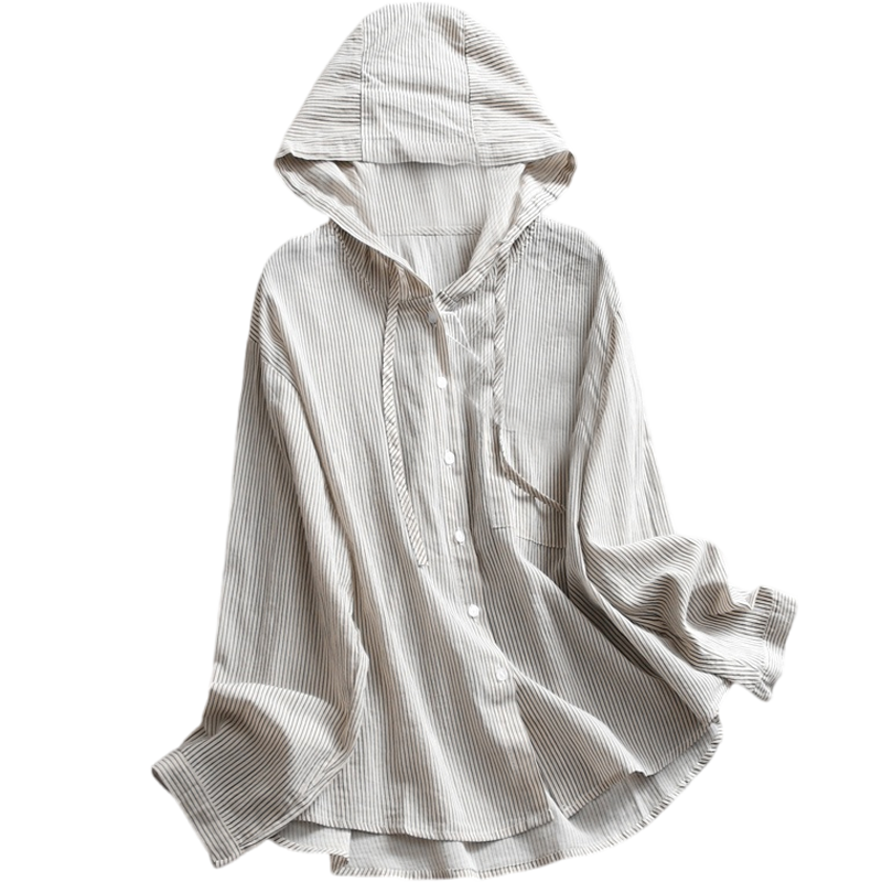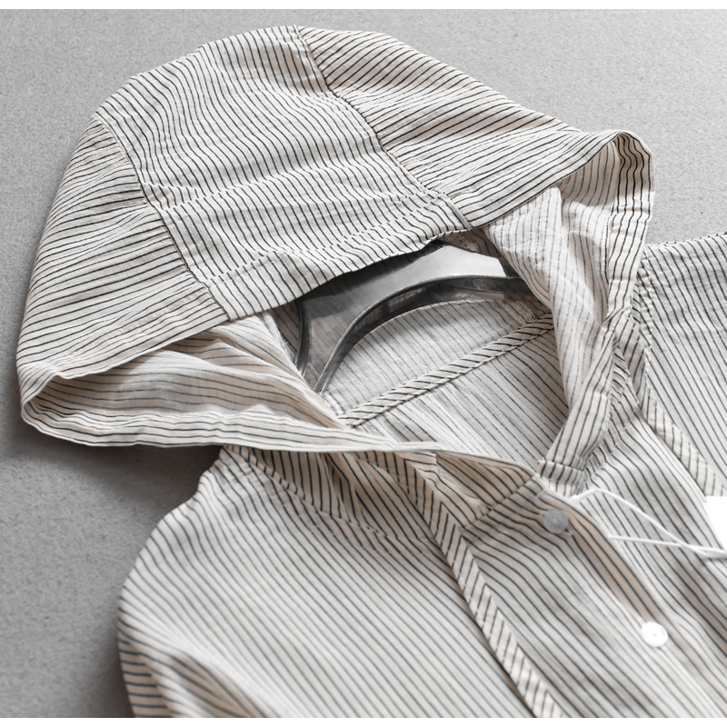 条纹宽松轻薄连帽空调开衫外套2025夏季新款长袖女装防晒衬衫C583